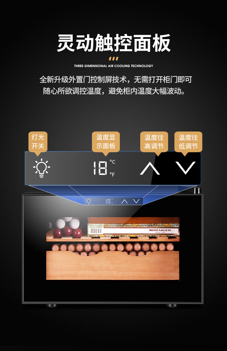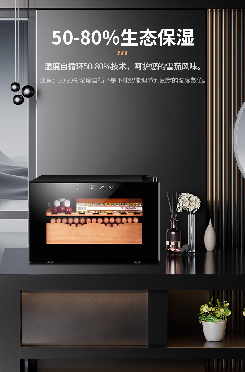 Kelong intelligent constant temperature moisturizing cedar wood naked home living room small cigar cabinet red wine cabinet 25C black full cigar style