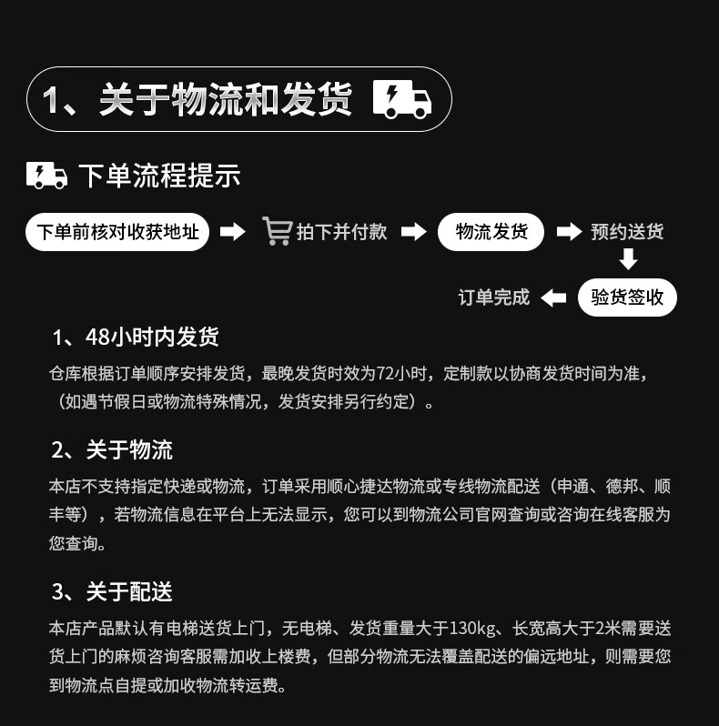 The following items (but not limited) might only could ship with specific logistic lines,