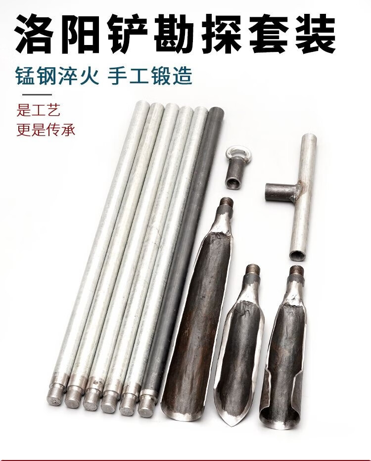 Armored Shield Luoyang Shovel Probe Rod Set Earth Picker Digging Holes Gardening Outdoor Archaeological Tools Exploration Shovel Head Manganese Steel Shovel 2 Meter Set 1 Shovel Head