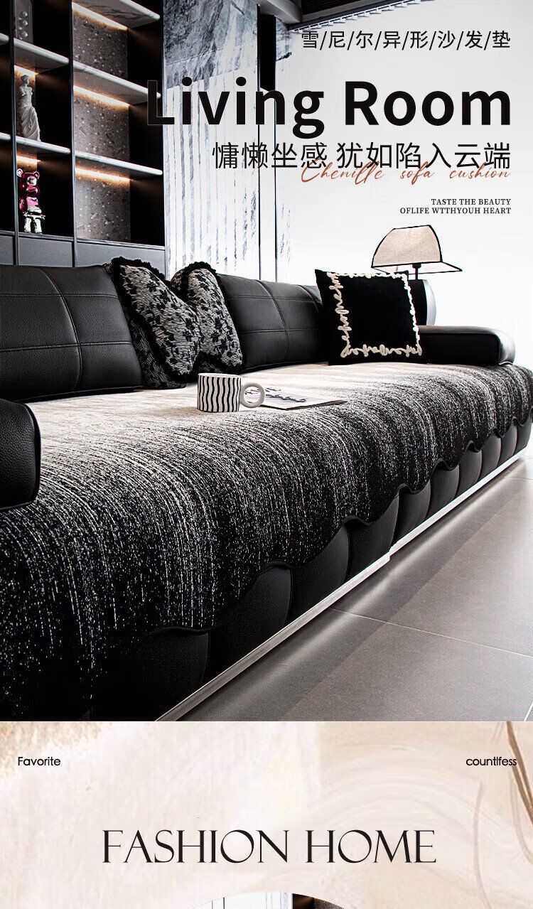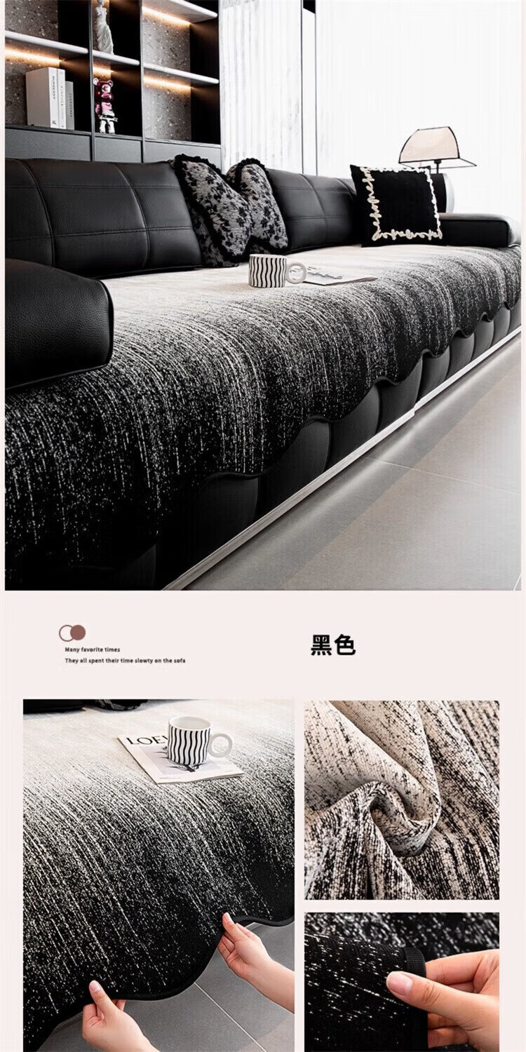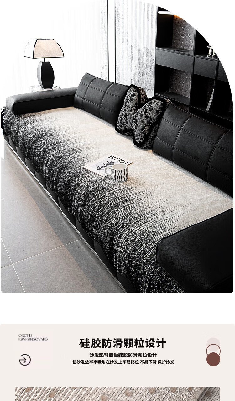 Lanlifang light luxury high-end leather sofa cushion 2025 four-season universal straight-row non-slip Lawrence sofa cushion cover special-shaped yarn-high-grade black 70cm*70cm one piece