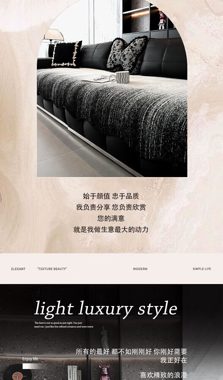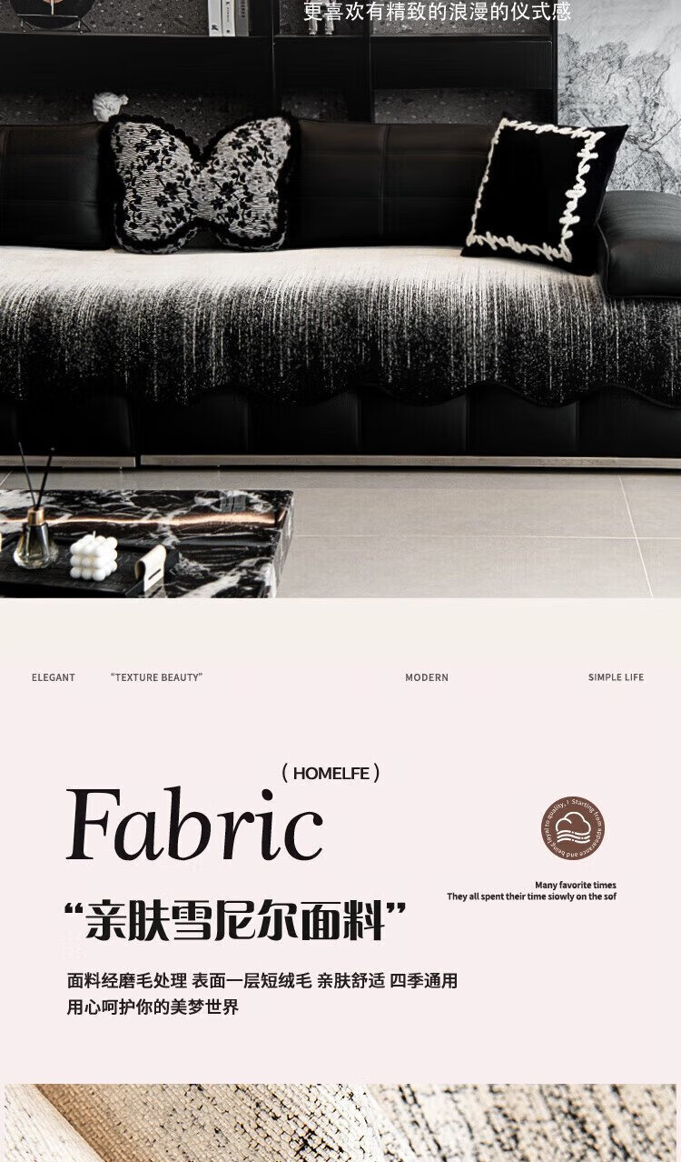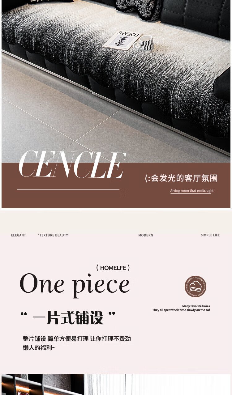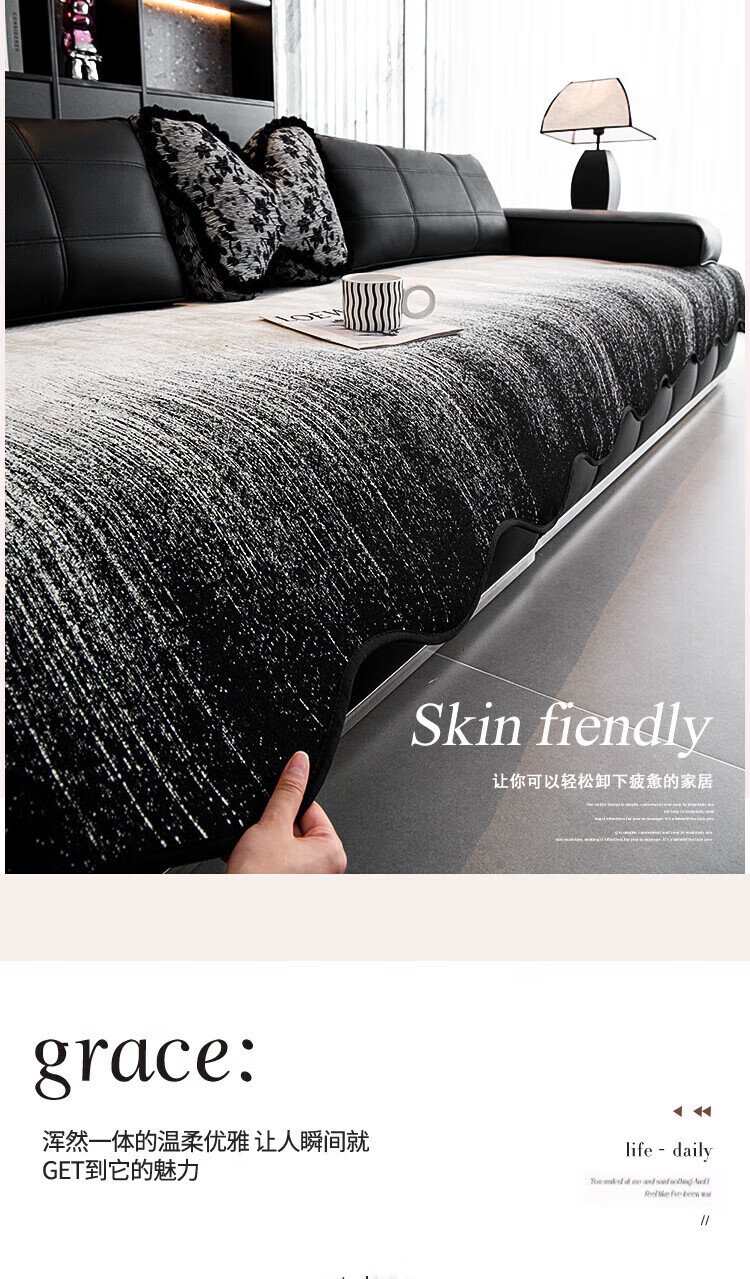 Lanlifang light luxury high-end leather sofa cushion 2025 four-season universal straight-row non-slip Lawrence sofa cushion cover special-shaped yarn-high-grade black 70cm*70cm one piece