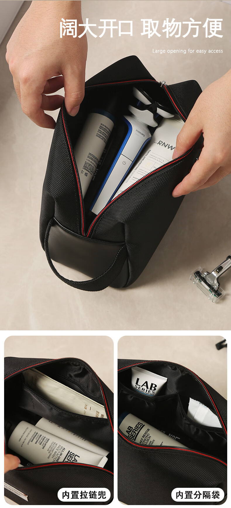 ToMill Toiletries Bag Men's Travel Toiletries Storage Bag Business Waterproof Travel Portable Bath Bag Large Capacity Gentleman-Navy Blue