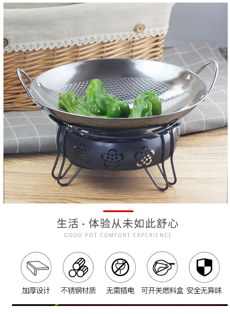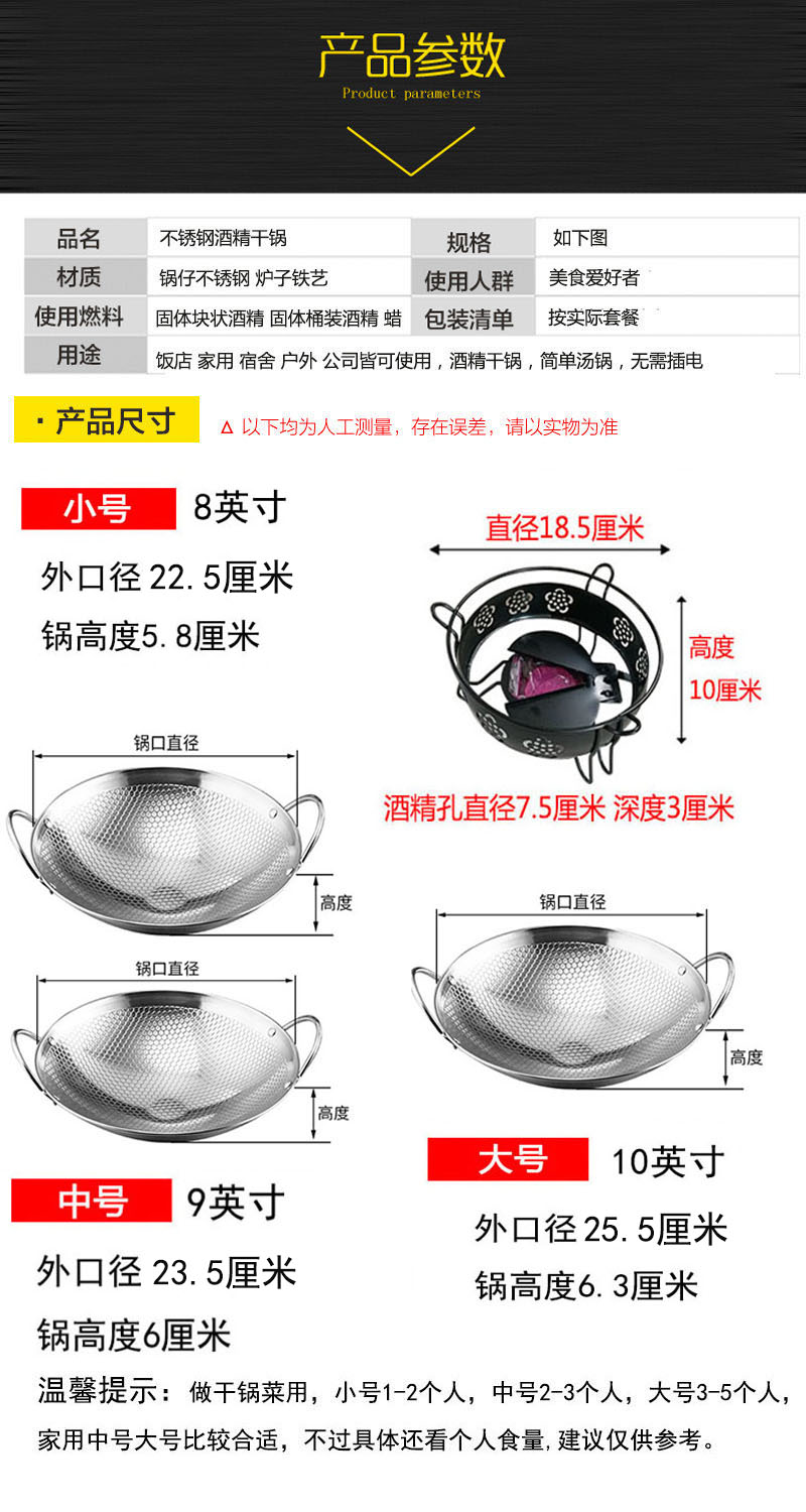 Liangting restaurant household stainless steel thickened alcohol stove is not easy to stick dry pot pot household set small hot pot commercial bar tripod large single pot 25cm