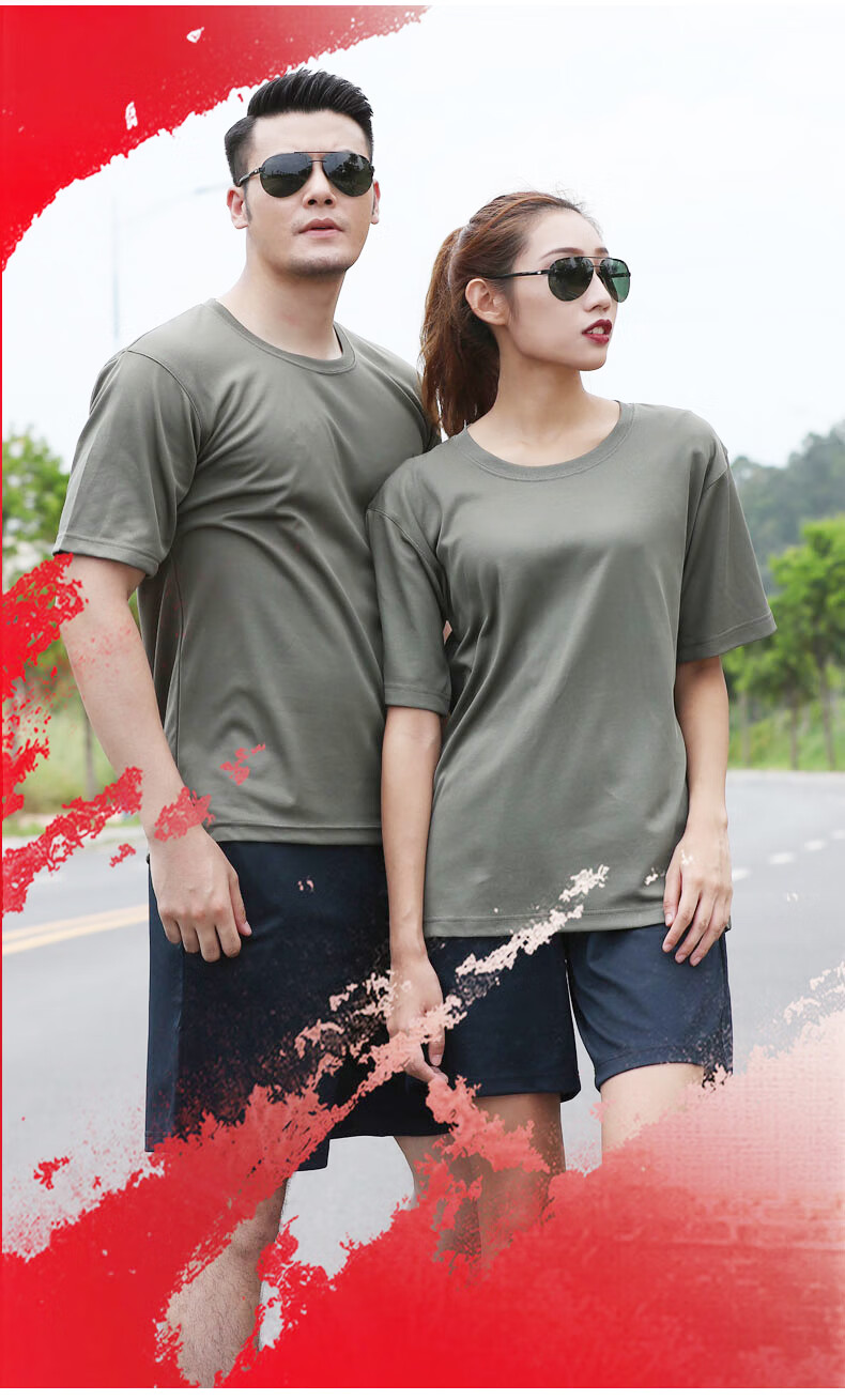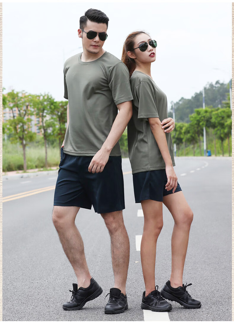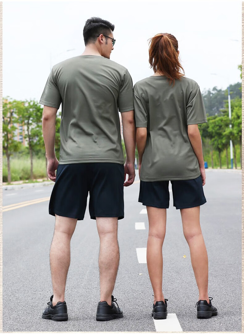Yusa genuine physical fitness clothing training suit summer men and women short-sleeved shorts training clothing quick-drying sports round neck t-shirt camouflage gray physical fitness clothing (single pants) 175/92-96