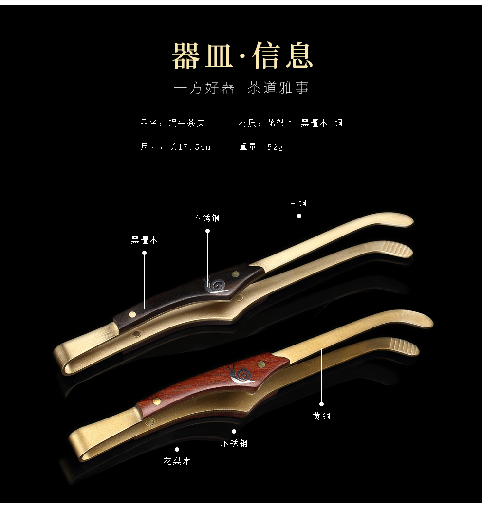 Pinyiheng pure copper tea clip non-slip tea clip Kung Fu tea set accessories Liujunzi stainless steel metal tea leaf clip tea cup tea tweezers T1 tea clip