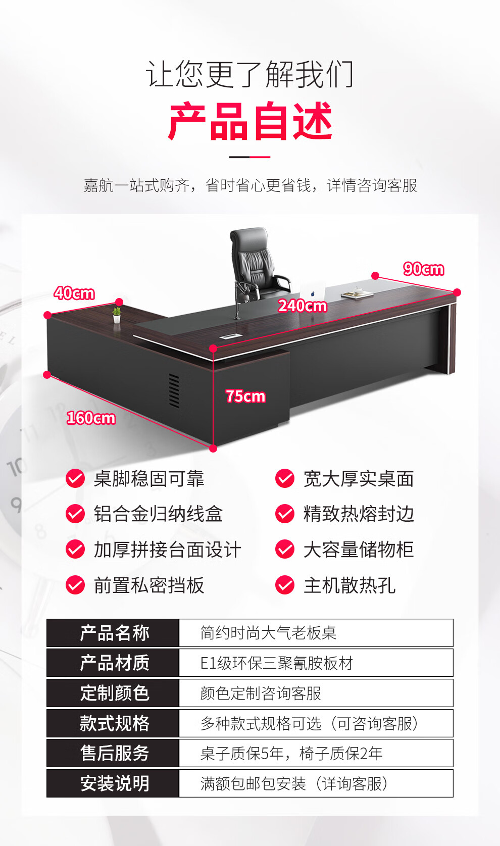 Jiahang Boss Desk President Desk Desk Simple Modern Manager Desk Supervisor Office Desk and Chair Combination Executive Desk 2.0 Meter Boss Desk + Chair
