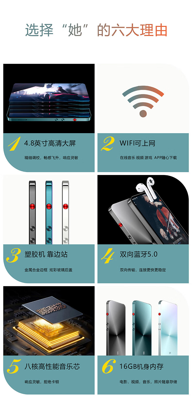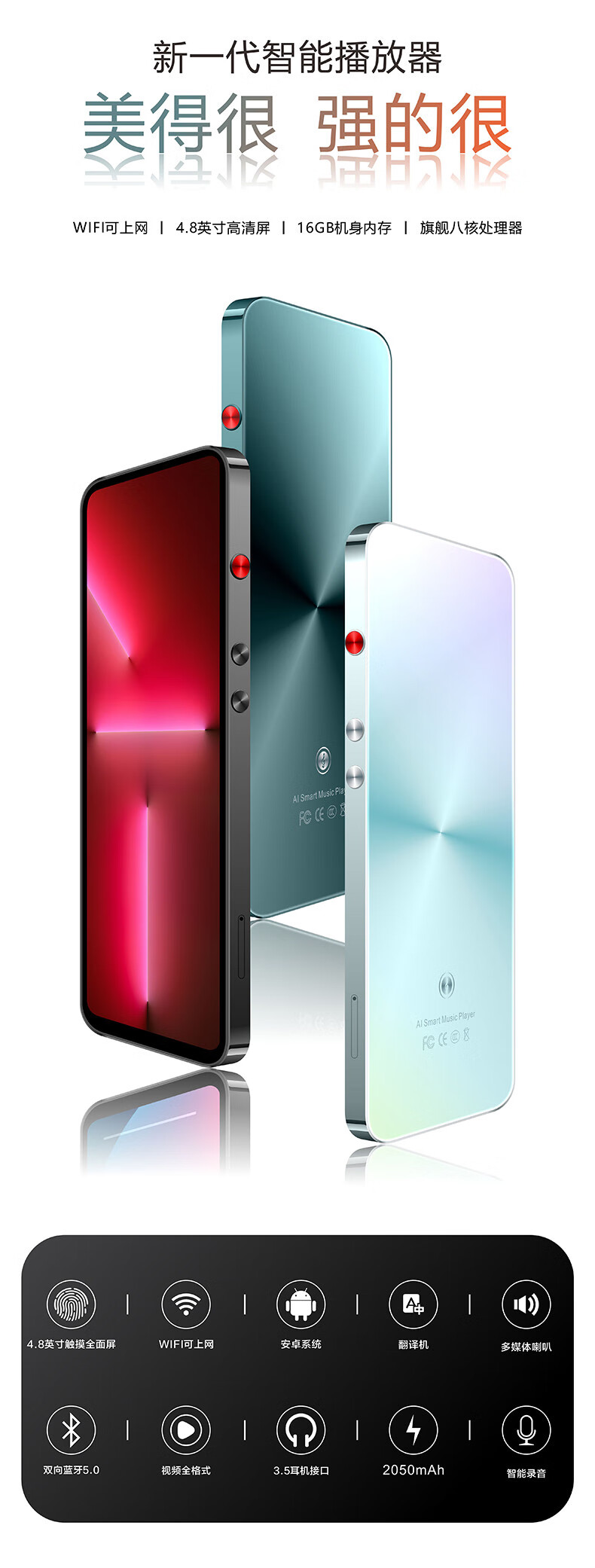 Anika MP4 smart touch WiFi can access the Internet Bluetooth mp5mp3 full screen mp6 Walkman student version player external play Sky City (WiFi Internet + 2G running memory) 16G body memory + 16G memory card