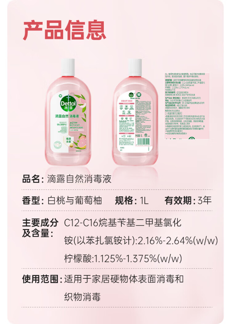 Dettol disinfectant, disinfectant, water, clothing sterilizer, inactivate H3N2 influenza virus, sterilize, remove mites, non-84 alcohol, classic 1.8L 2 bottles