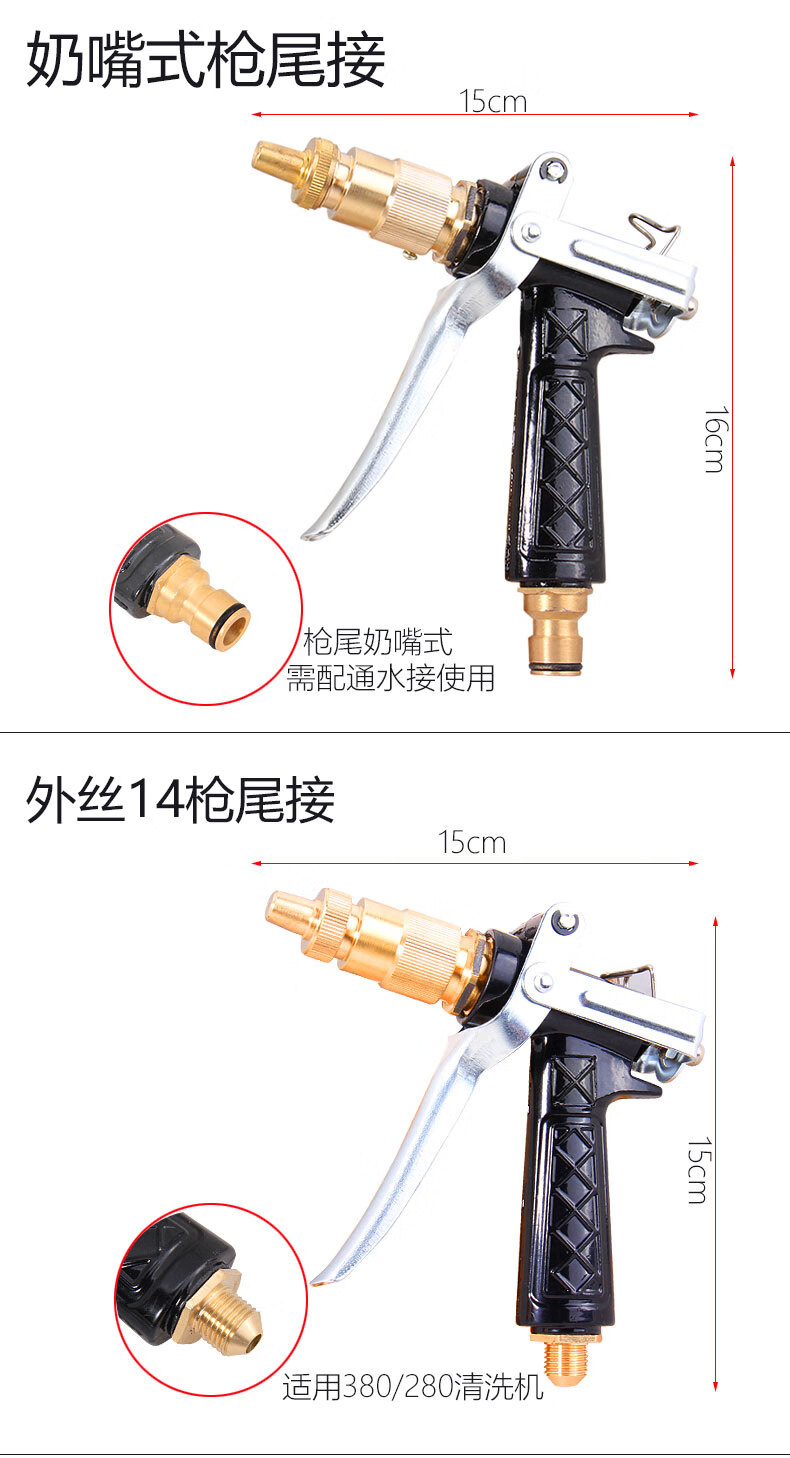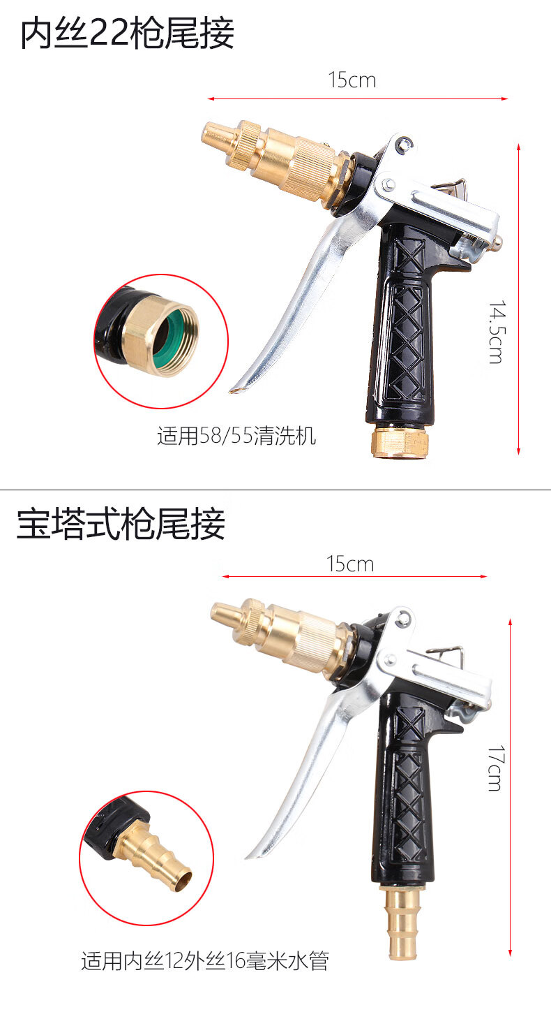 Car washing machine all-copper water gun head gun High-pressure cleaning machine 280 380 55 58 type anti-winding quick-connect water gun 310g inner wire 22 tail black gun