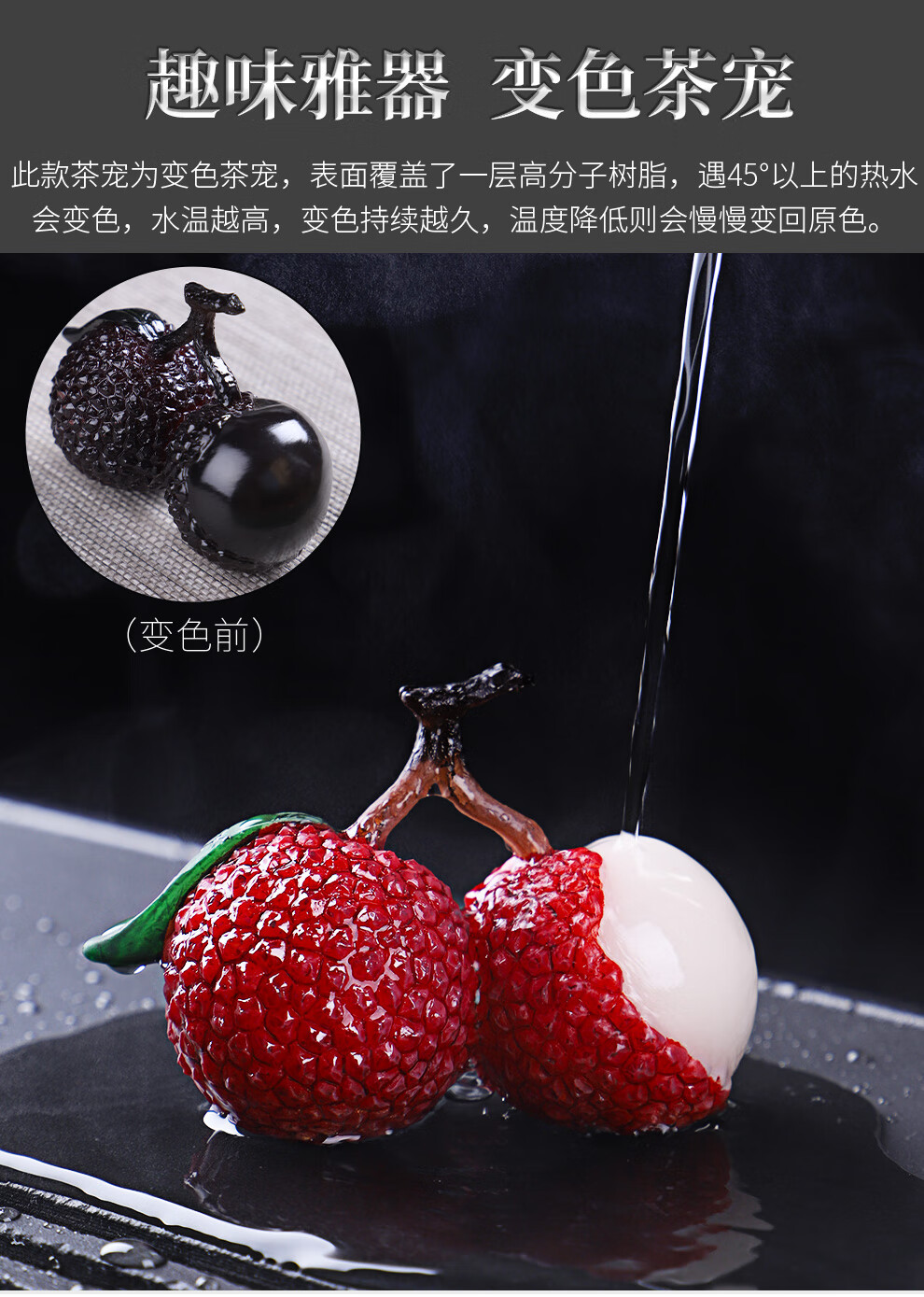 Xiangye color-changing tea pet ornaments color-changing lychee tea pet ornaments boutique can raise creative tea play tea ceremony tea set accessories color-changing lychee 2 pieces with gift box