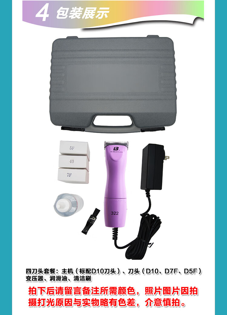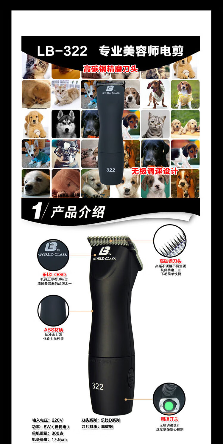 Lebi 322 Electric Clipper Speed Adjustable Four-Blade Pet Professional Electric Clipper Dog Clipper Pet Shaver Razor Four-Blade Package (10F+7F+5F+4F)