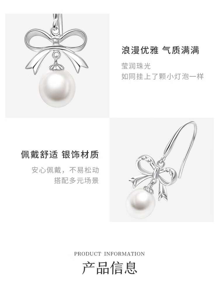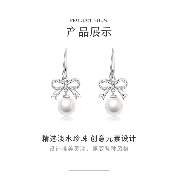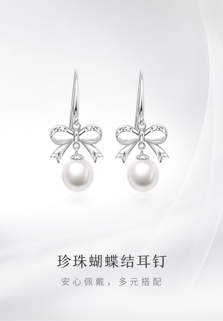 Chow Tai Fook Simple Bow 925 Silver Pearl Earrings AQ33261 Birthday Gift AQ33261