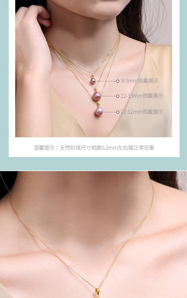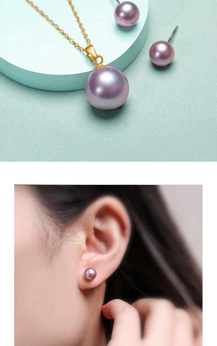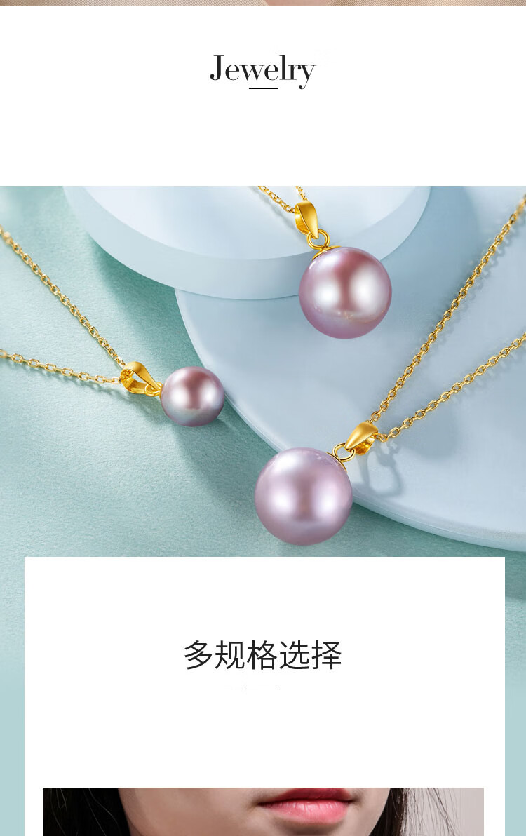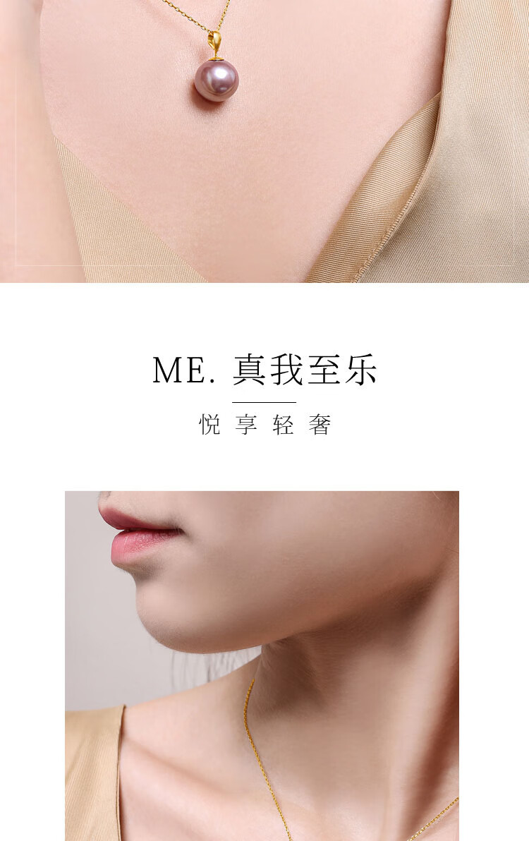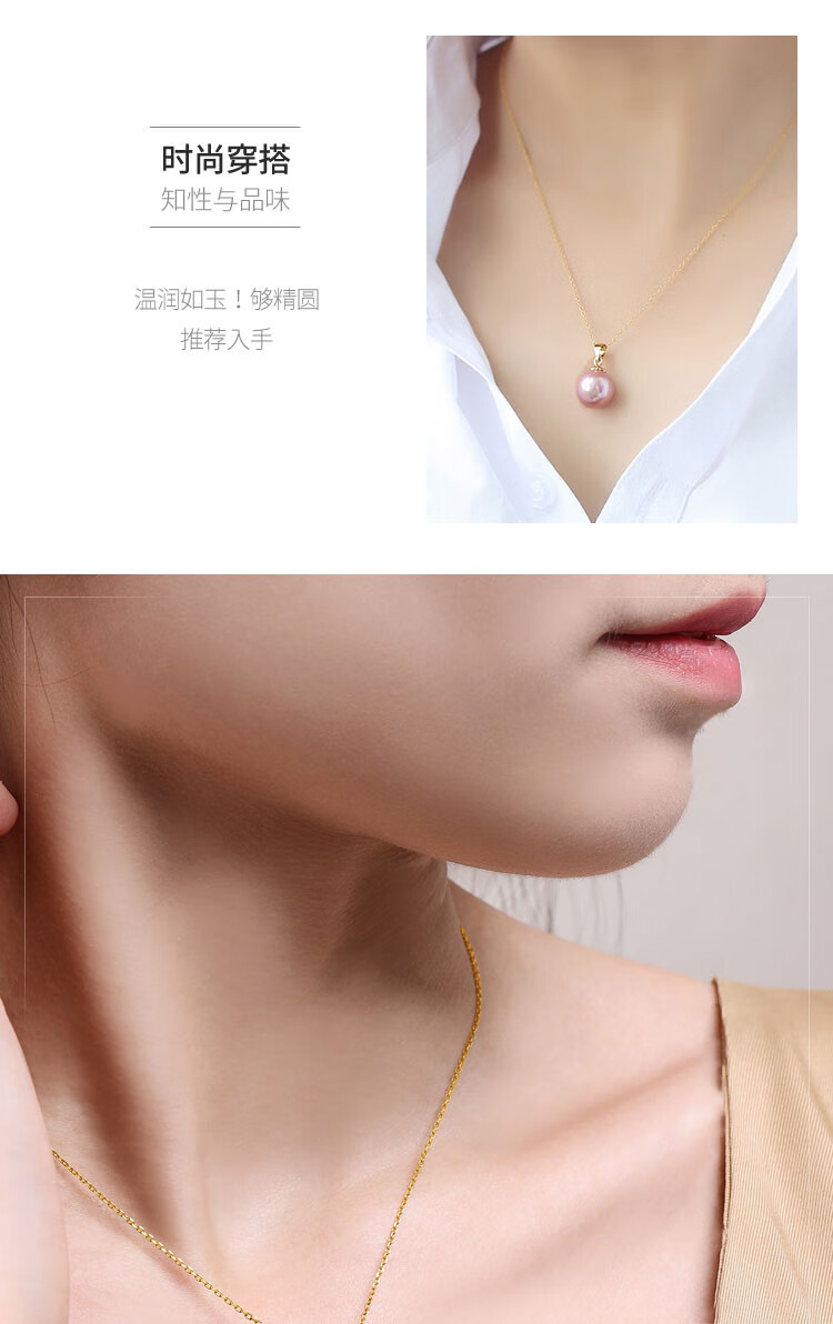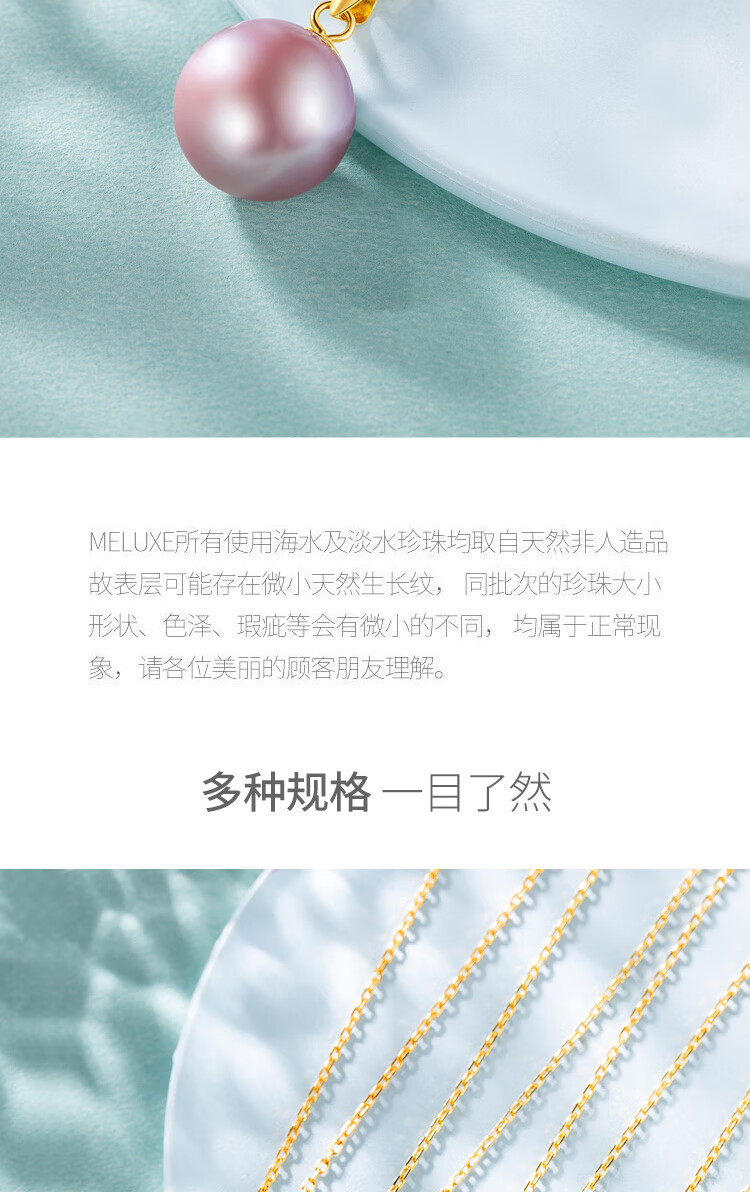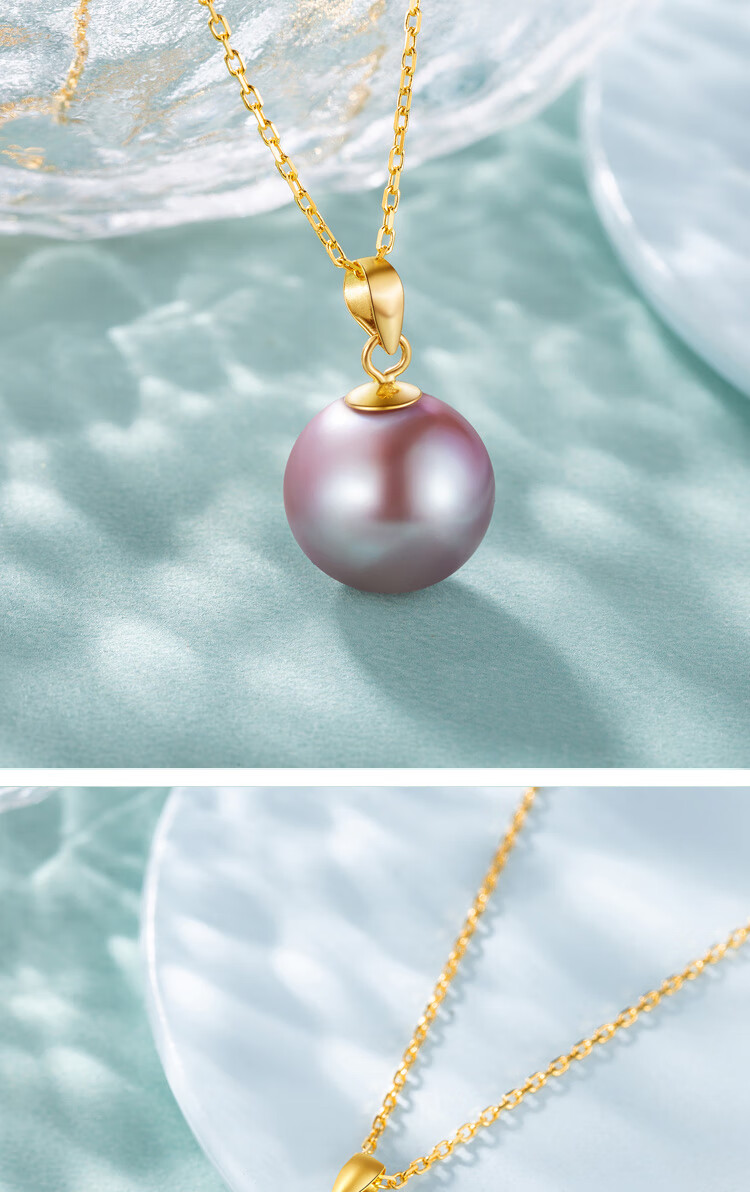 Meluxe Jiuzilihuo 18K gold Edison freshwater pearl pendant purple pearl clavicle chain birthday gift for wife 10-11mm white