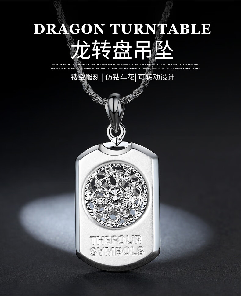 Aidozuan pt950 platinum dragon brand pendant men's fine platinum square brand large pendant can be rotated weighing 27-28 grams + delivery lanyard