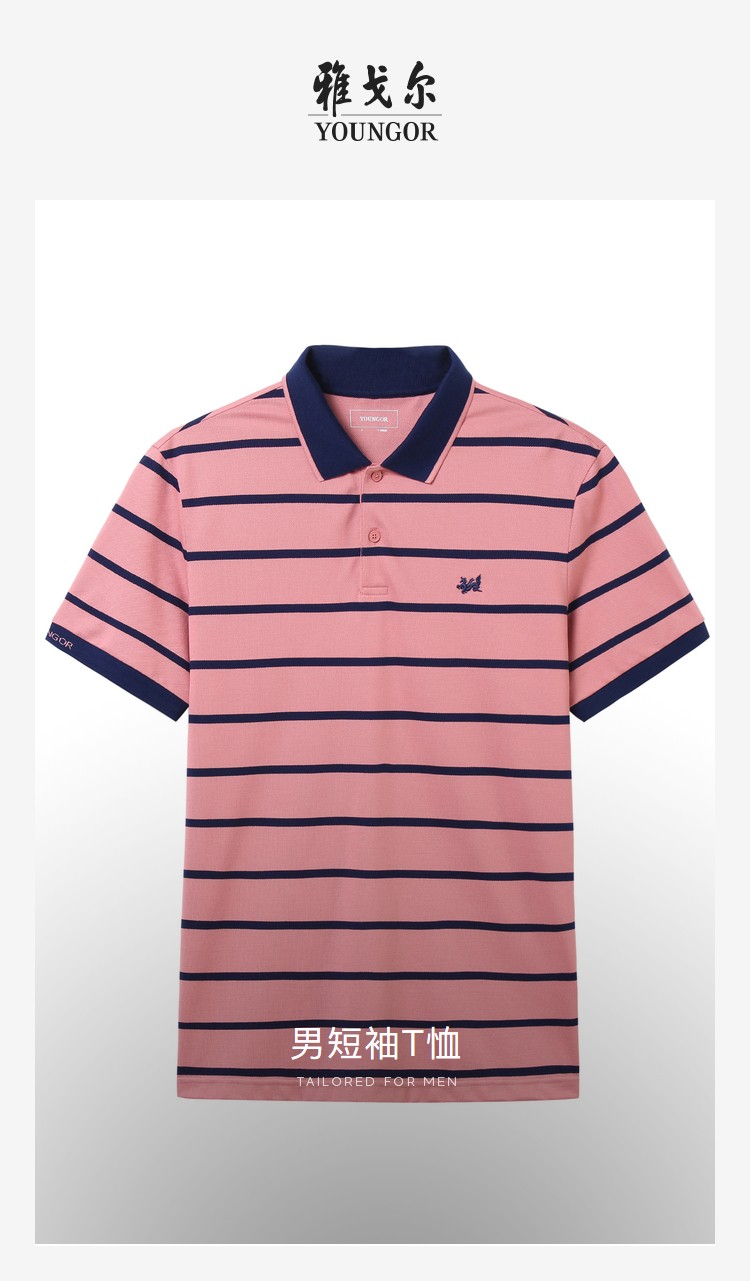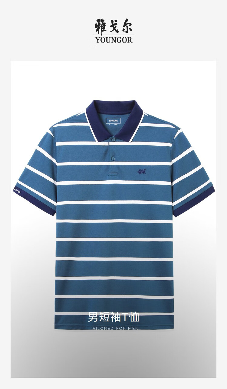 YOUNGOR short-sleeved POLO shirt men's lapel fashion business pure cotton fabric double pique water-soft cotton soft feel POLO shirt YSPC520179PFA XL