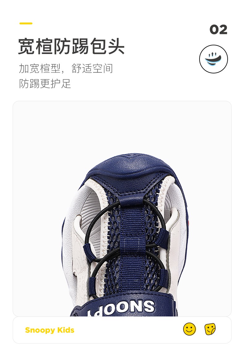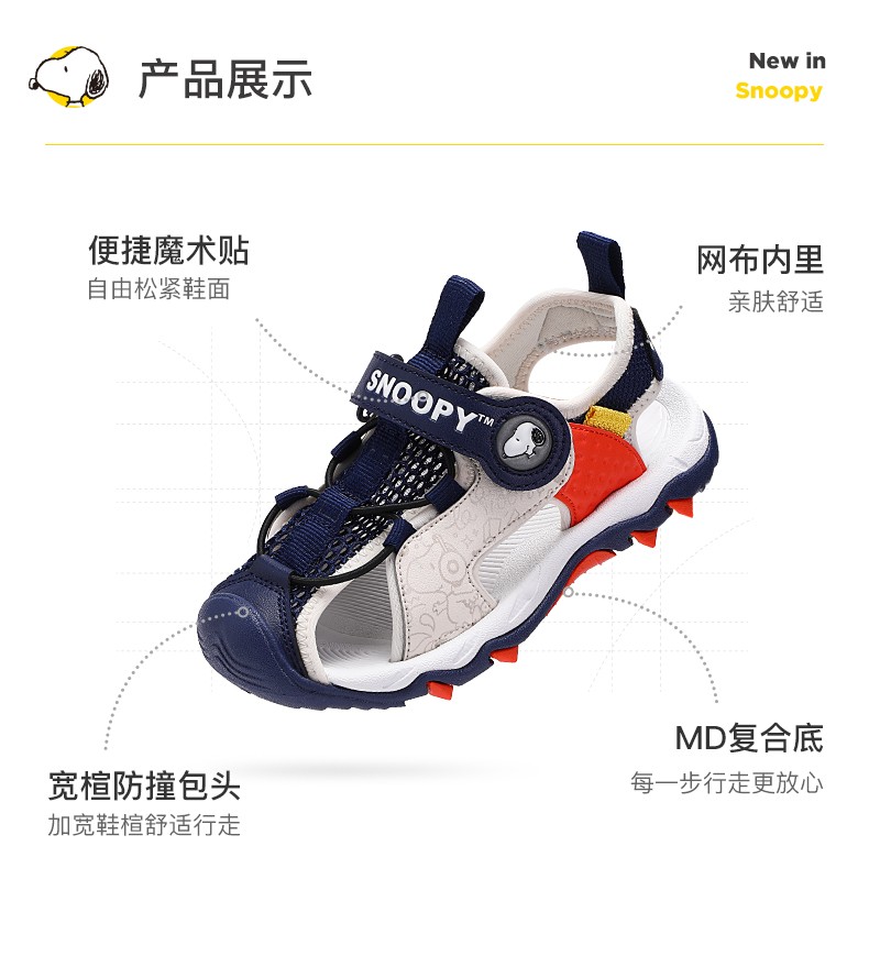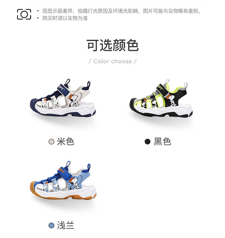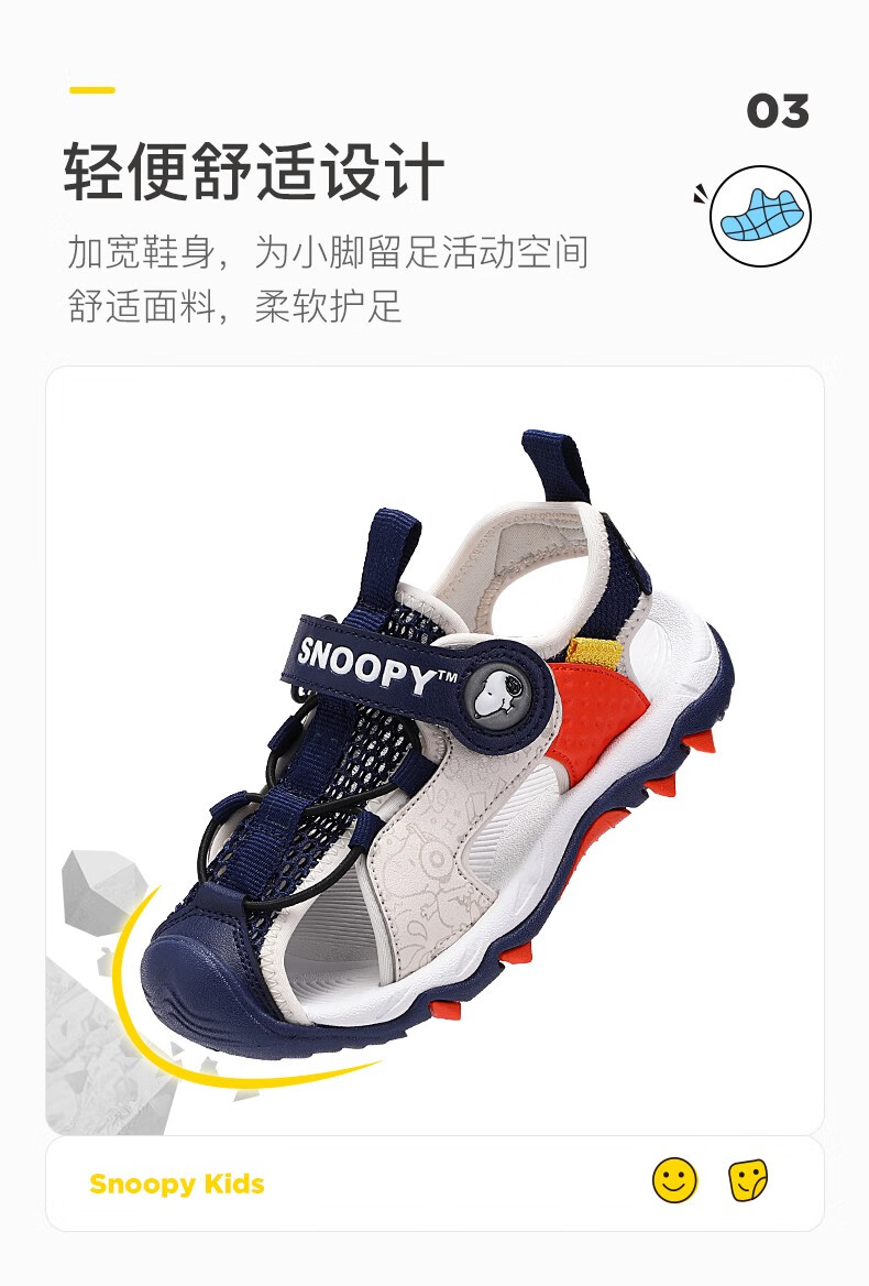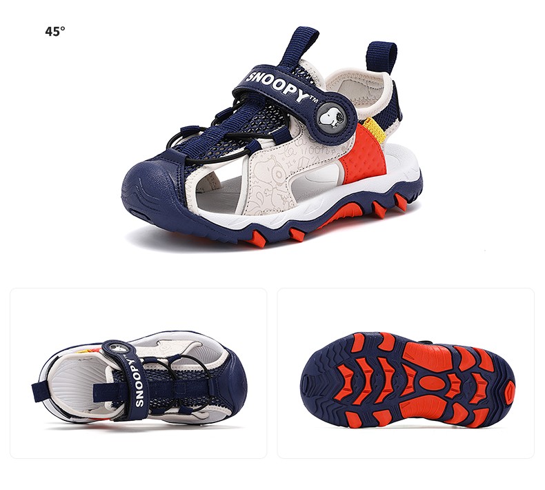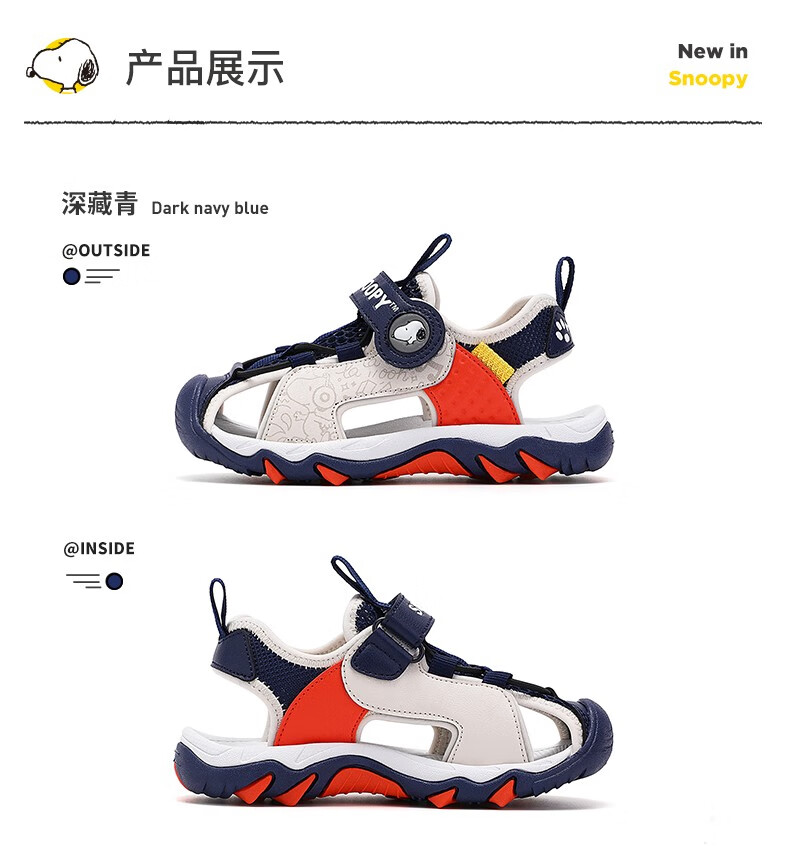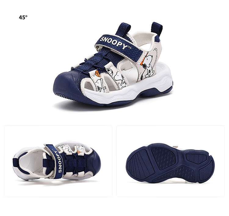Snoopy (SNOOPY) children's shoes, children's sandals, Baotou anti-kick summer new style boys' breathable anti-slip medium and large children's outdoor sandals, 802 dark blue rice, size 27, inner length about 173mm