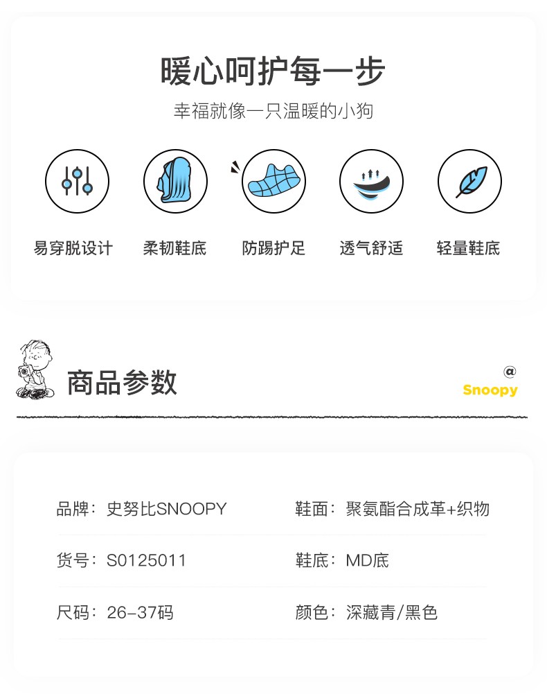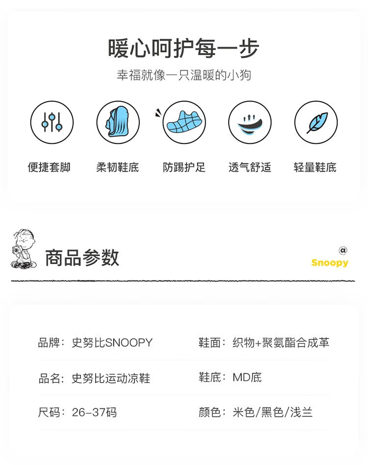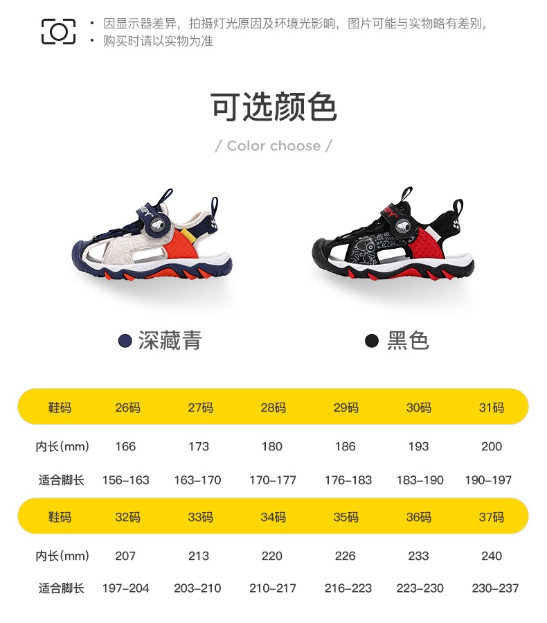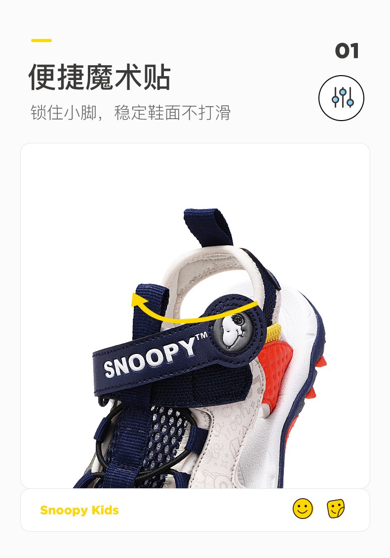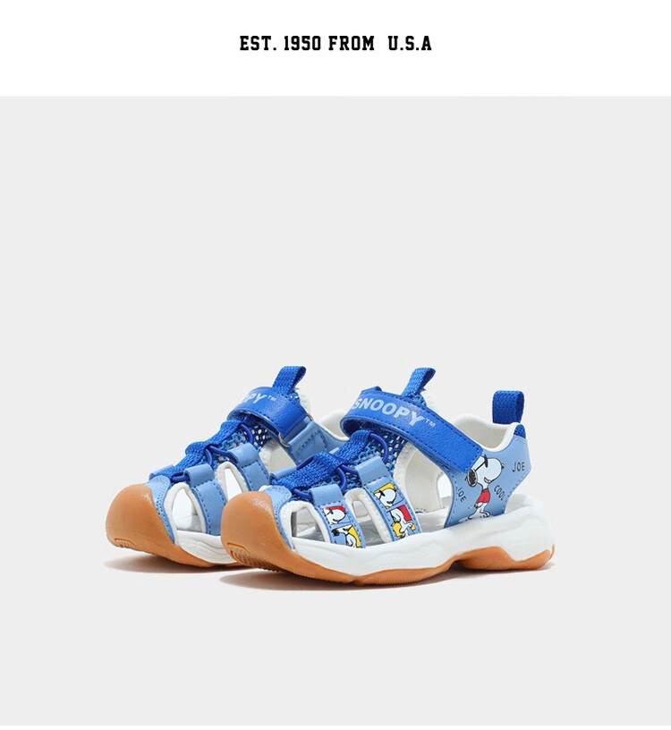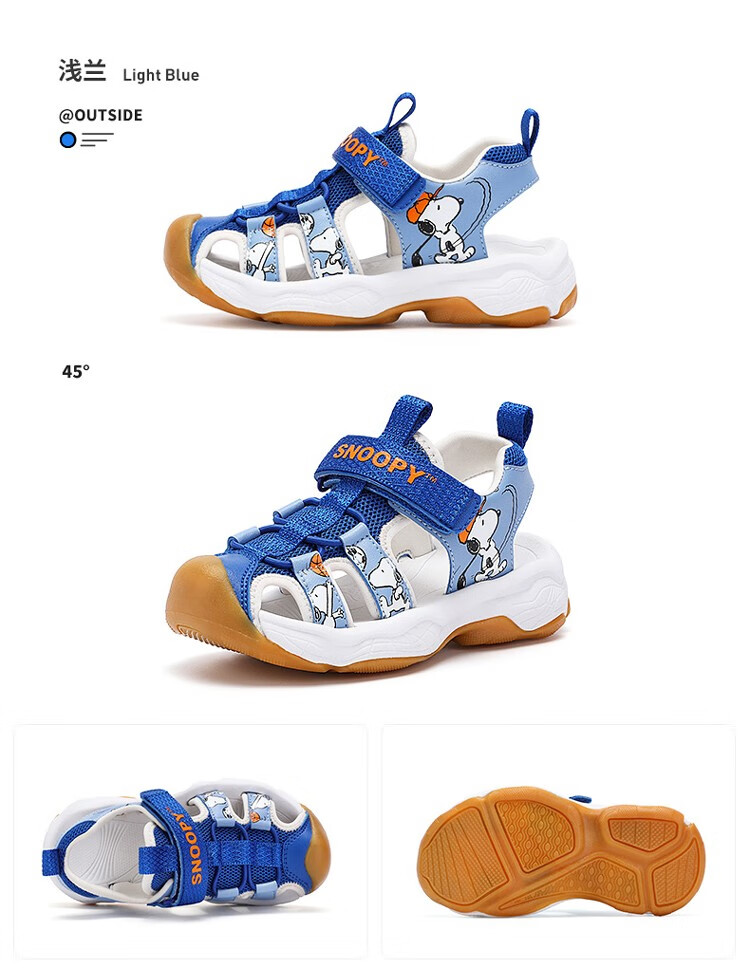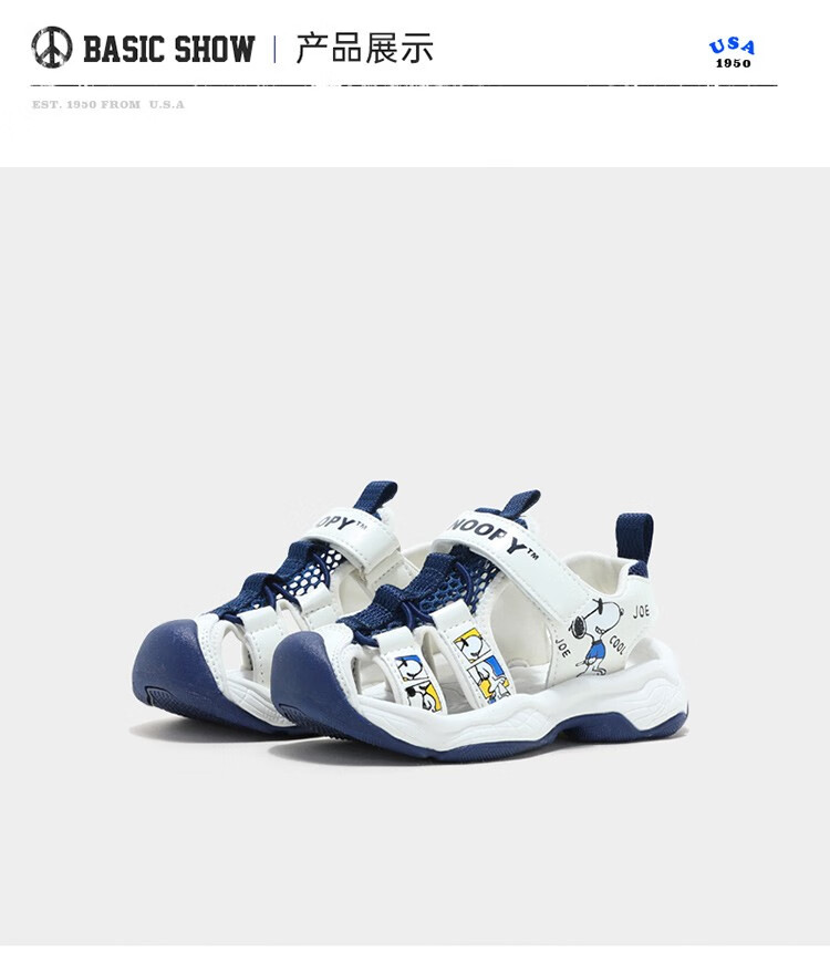 Snoopy (SNOOPY) children's shoes, children's sandals, Baotou anti-kick summer new style boys' breathable anti-slip medium and large children's outdoor sandals, 802 dark blue rice, size 27, inner length about 173mm