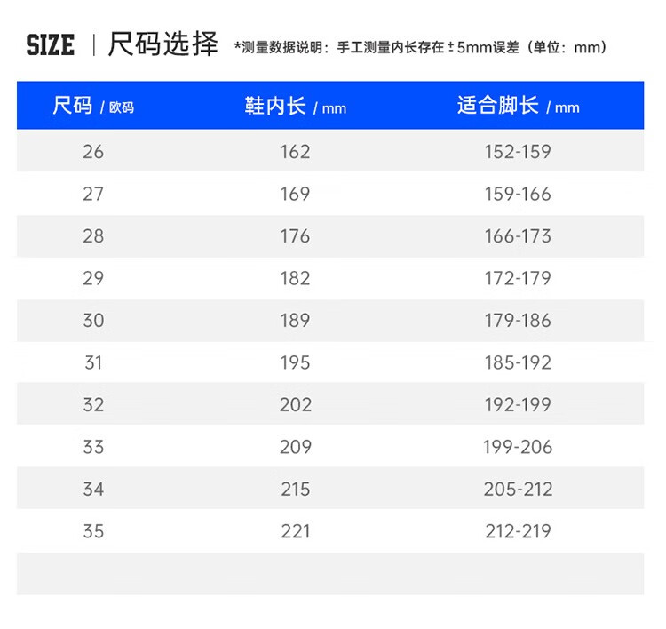 China (cm) 36 - 37 38 - 39 40 - 42 43 - 44 45 - 47