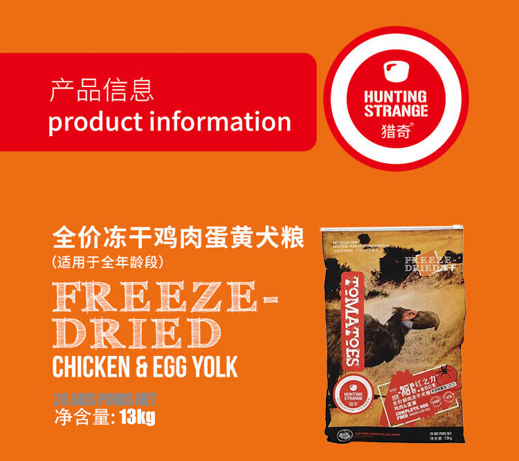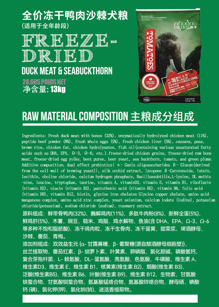 Xieqi Grain-Free Freeze-Dried Dog Food Chicken Apple Duck Sea Buckthorn Formula High Protein Dog Food Chicken Apple 13kg
