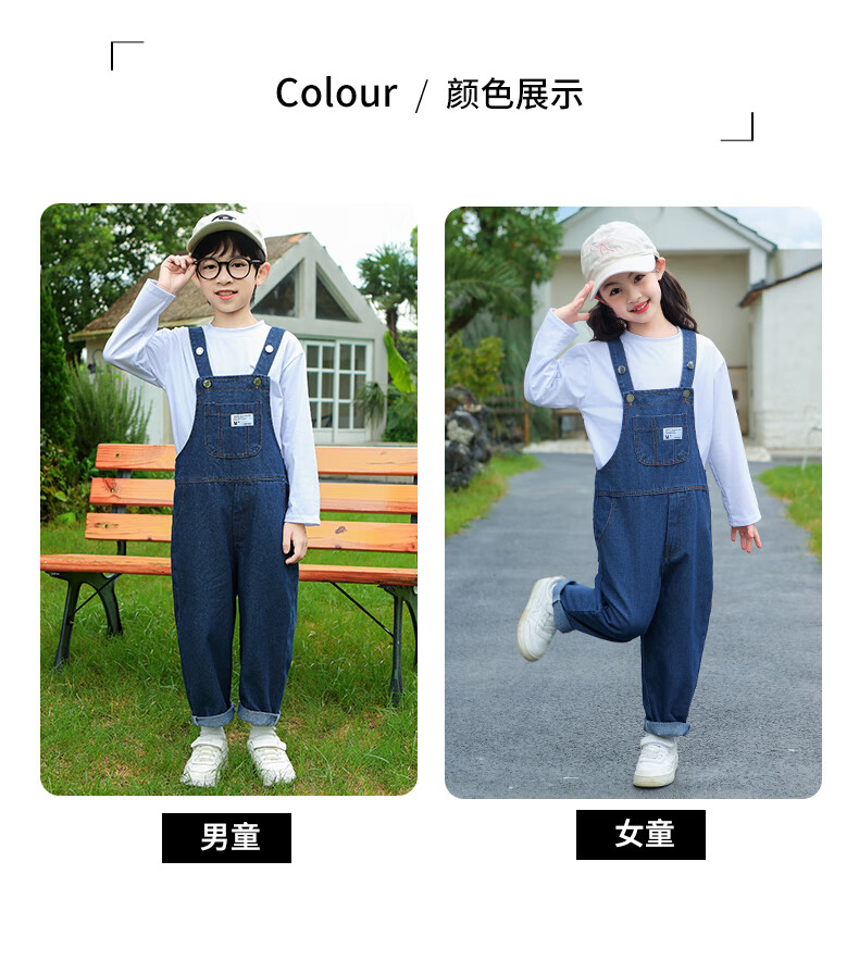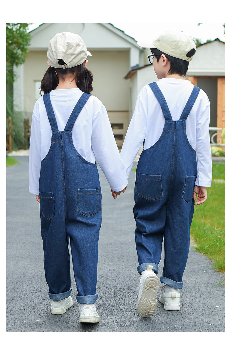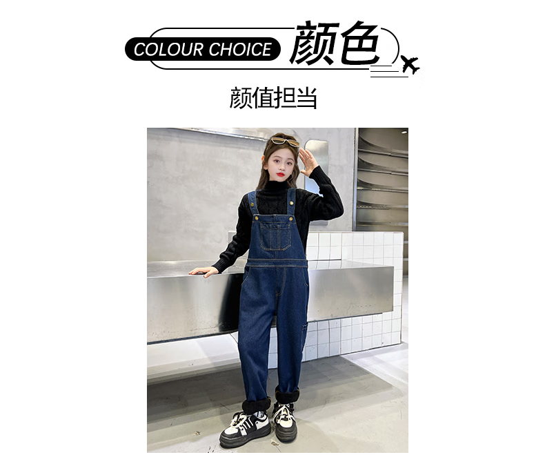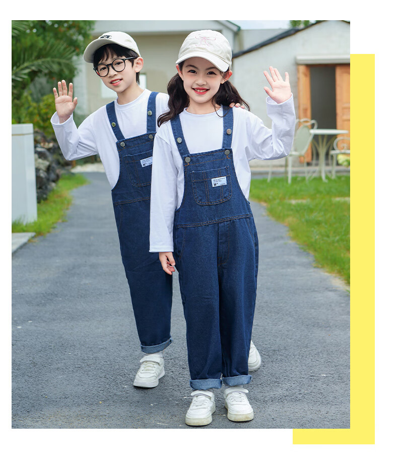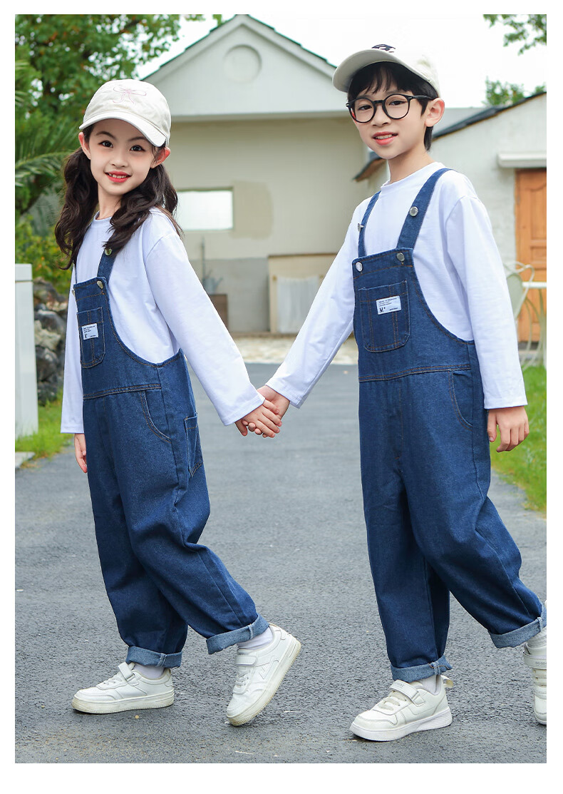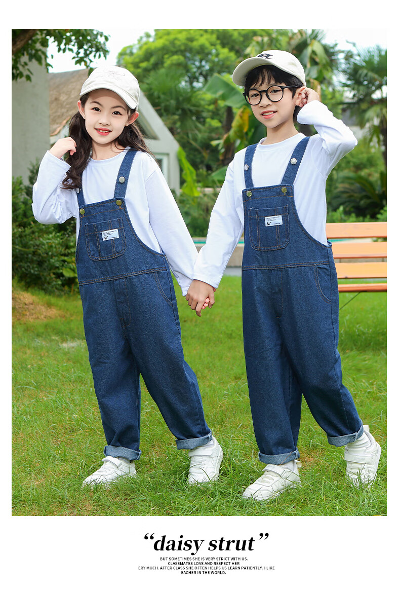 Sichuan boys and girls same style denim overalls 2025 spring, autumn and winter plus velvet jeans medium and large children's loose overalls half size too small blue five pockets 150cm