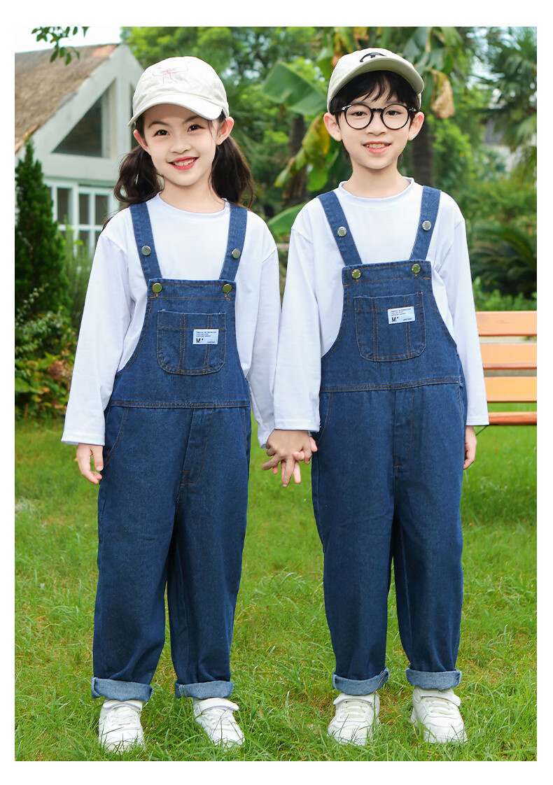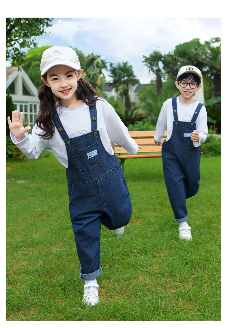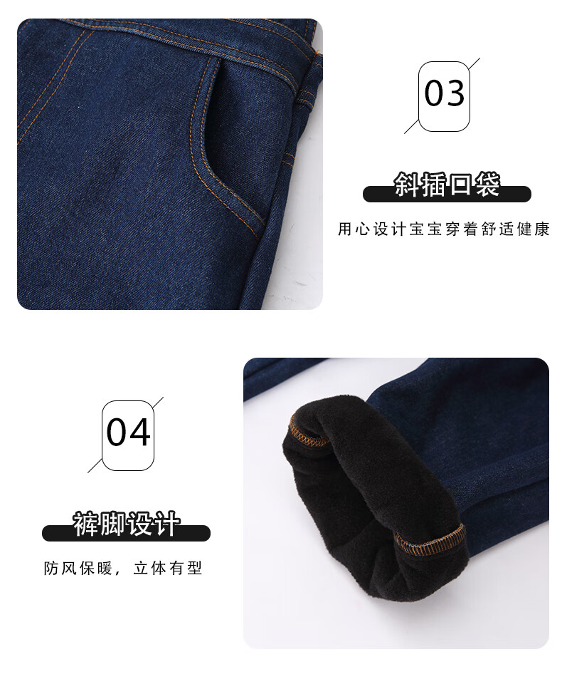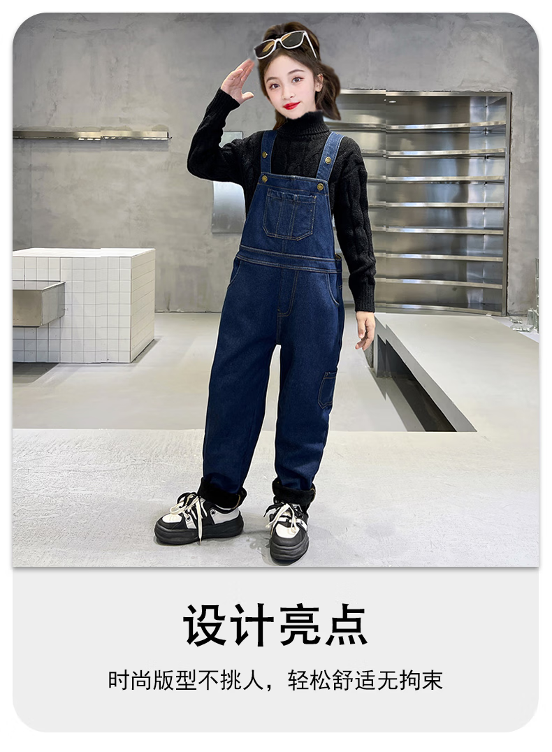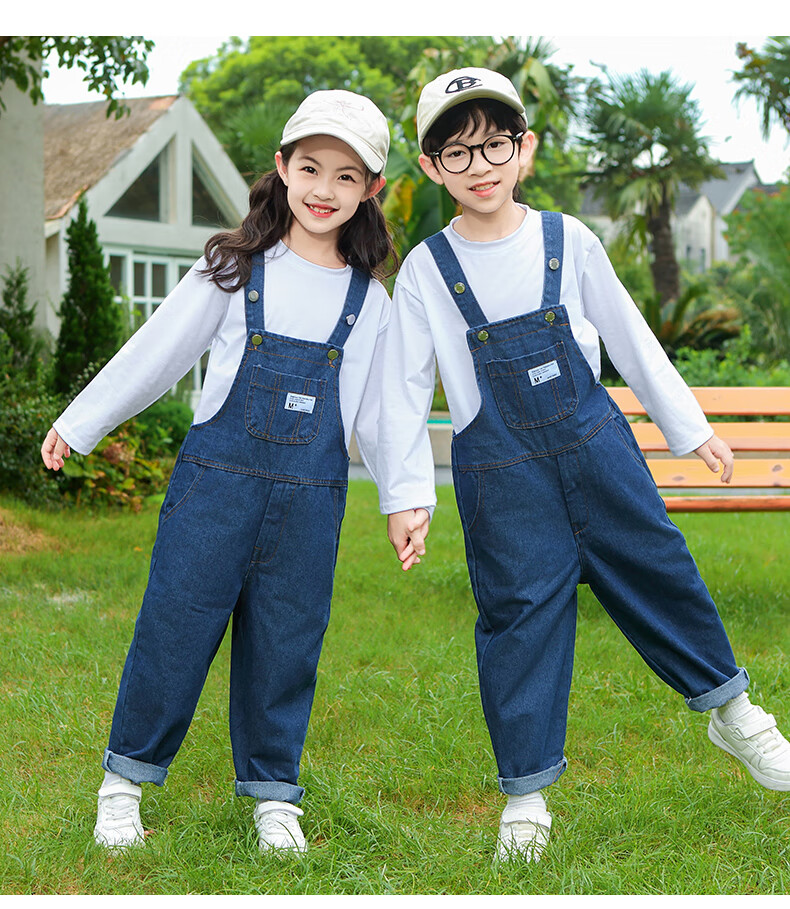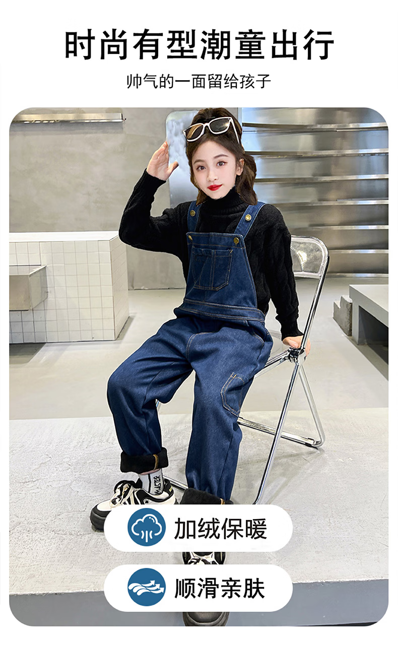 Sichuan boys and girls same style denim overalls 2025 spring, autumn and winter plus velvet jeans medium and large children's loose overalls half size too small blue five pockets 150cm