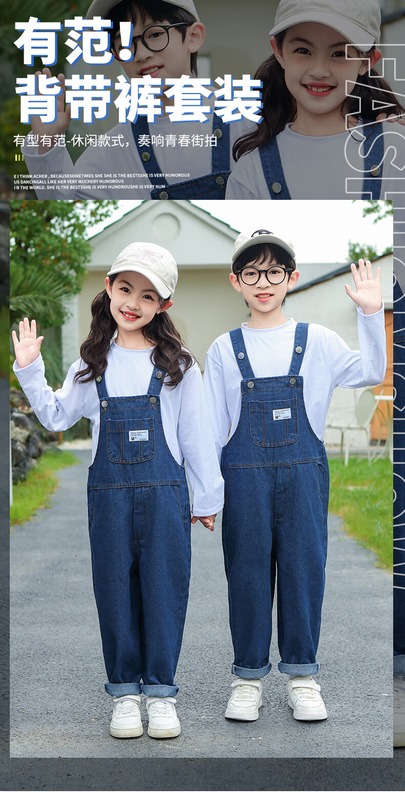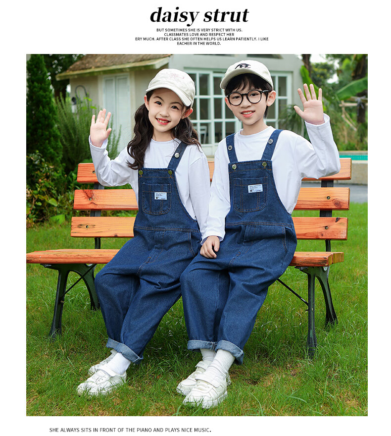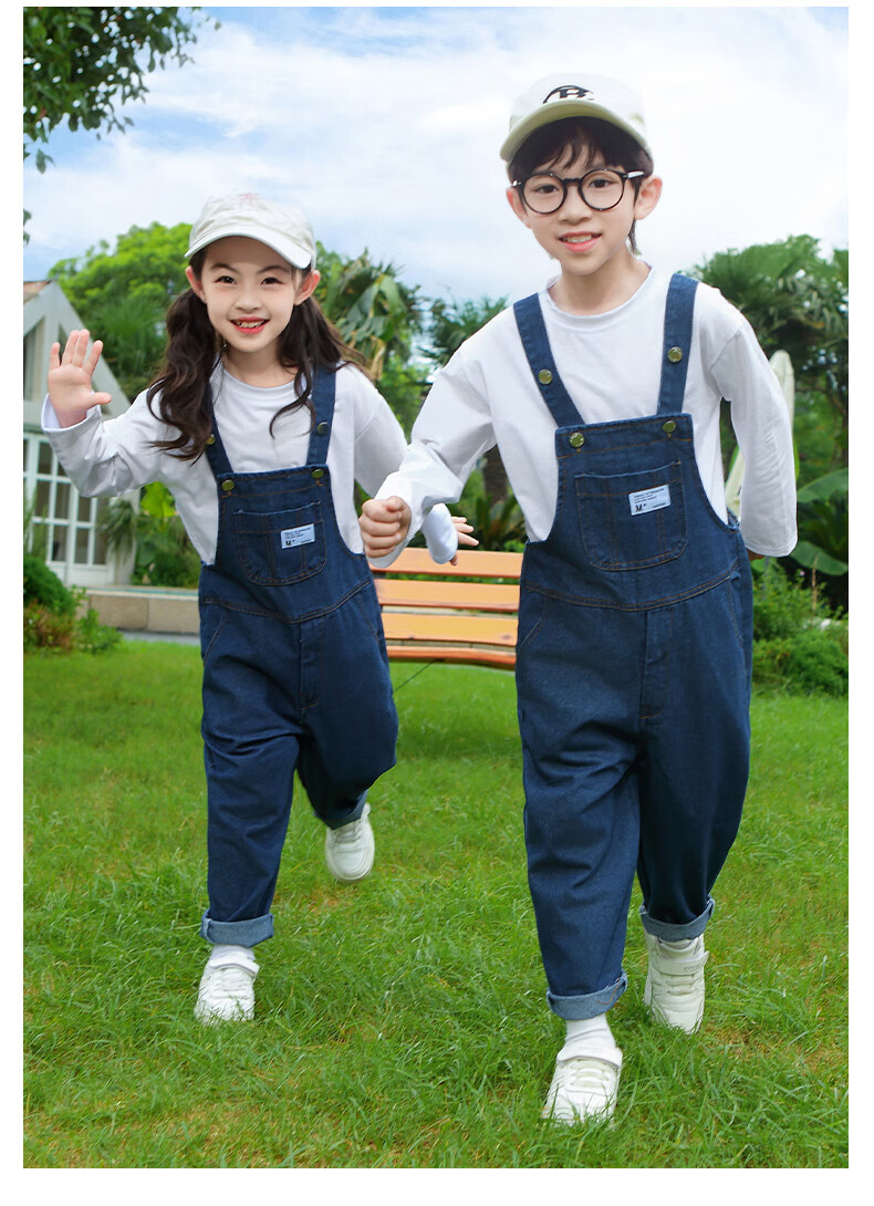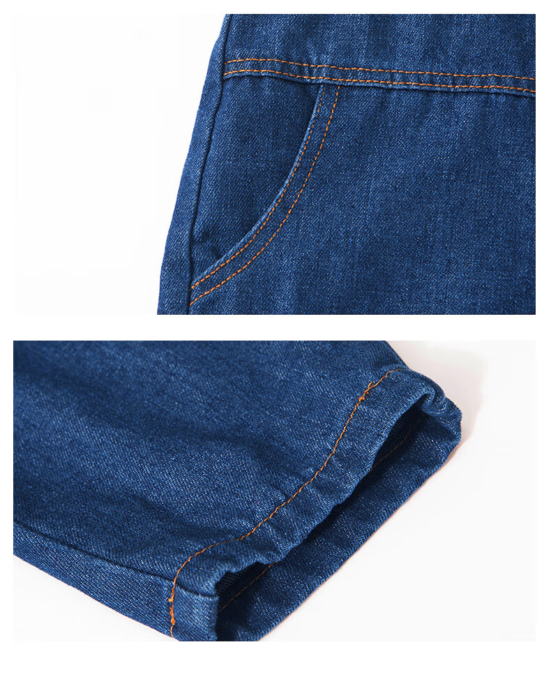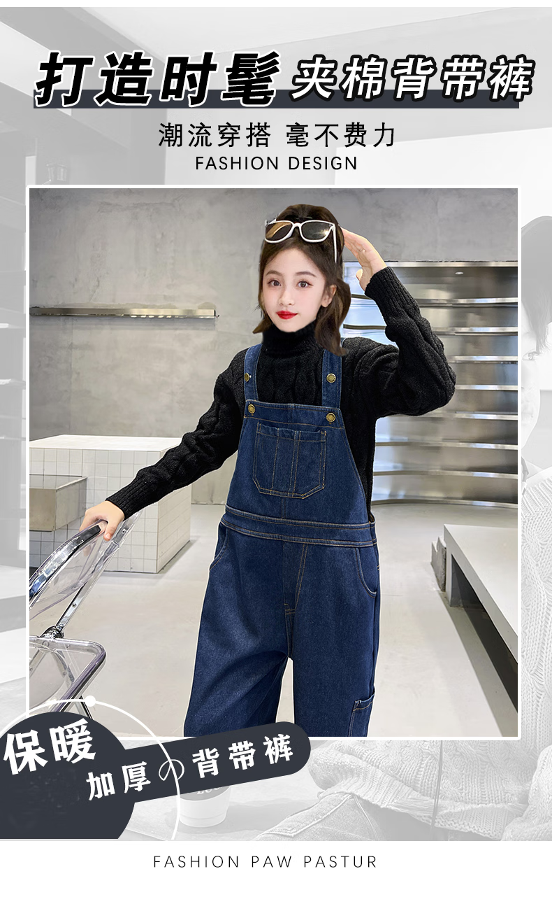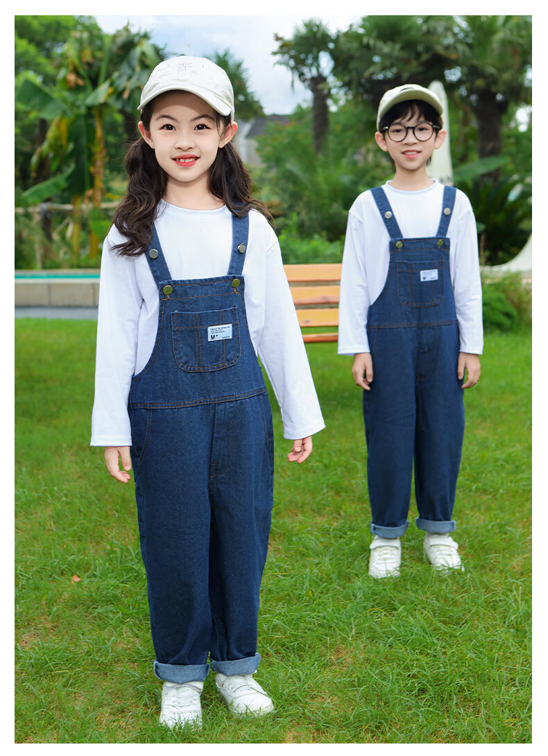 Sichuan boys and girls same style denim overalls 2025 spring, autumn and winter plus velvet jeans medium and large children's loose overalls half size too small blue five pockets 150cm