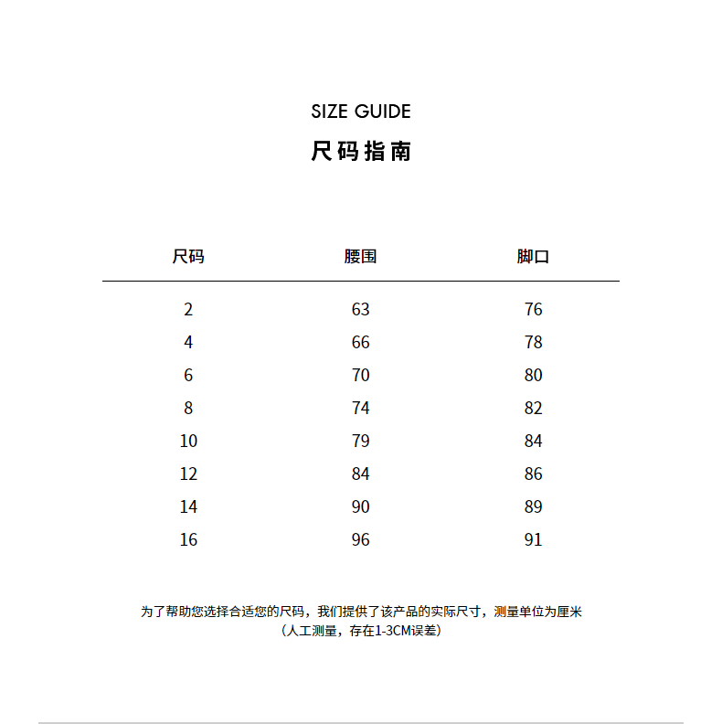 Outseam (cm) 99 cm 101.5 cm 104 cm 106.5 cm 109 cm