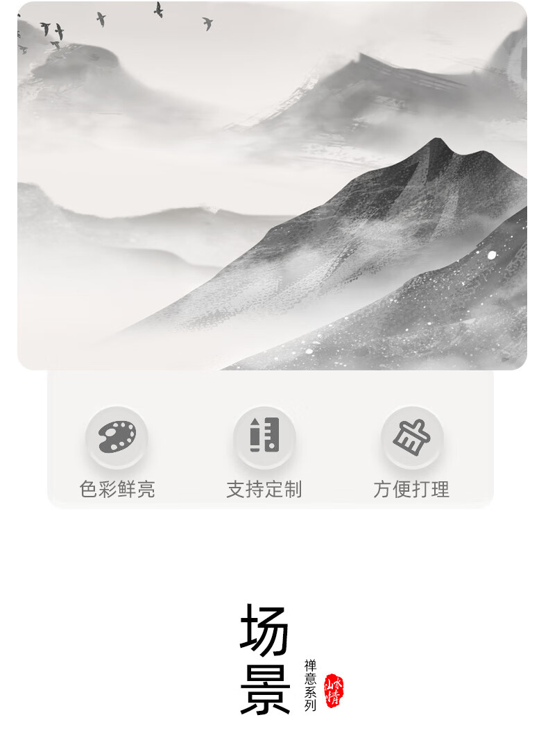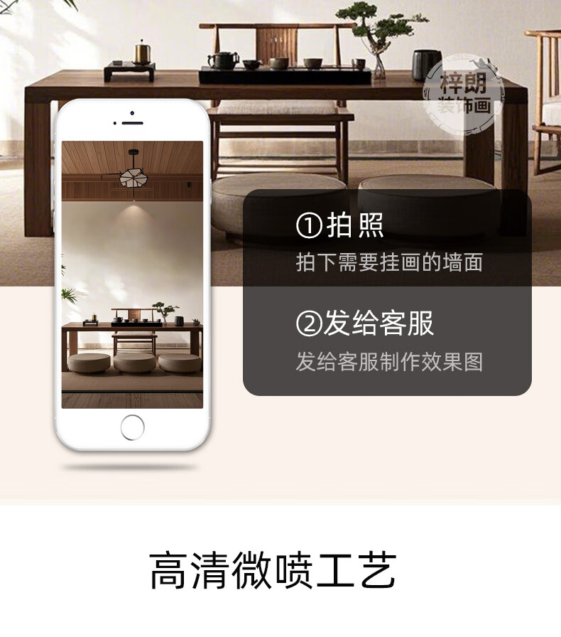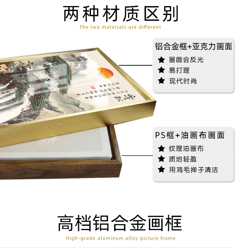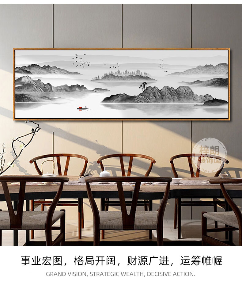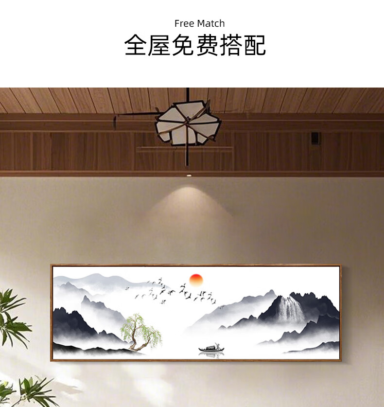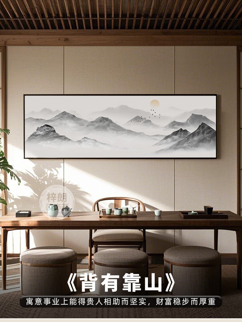 Zilang living room decorative painting sofa background wall ink Zen landscape painting wall hanging painting tea room office calligraphy and painting mural 04-with backing 50*150CM wood grain yellow frame + canvas SF Express