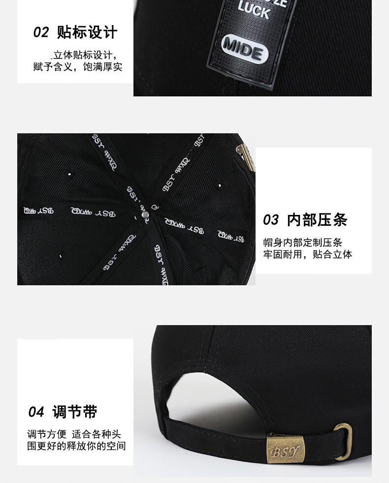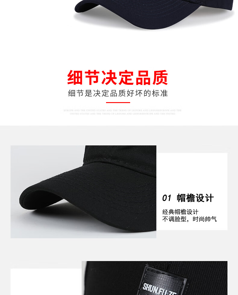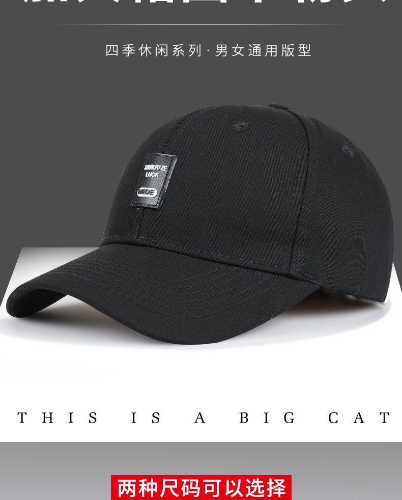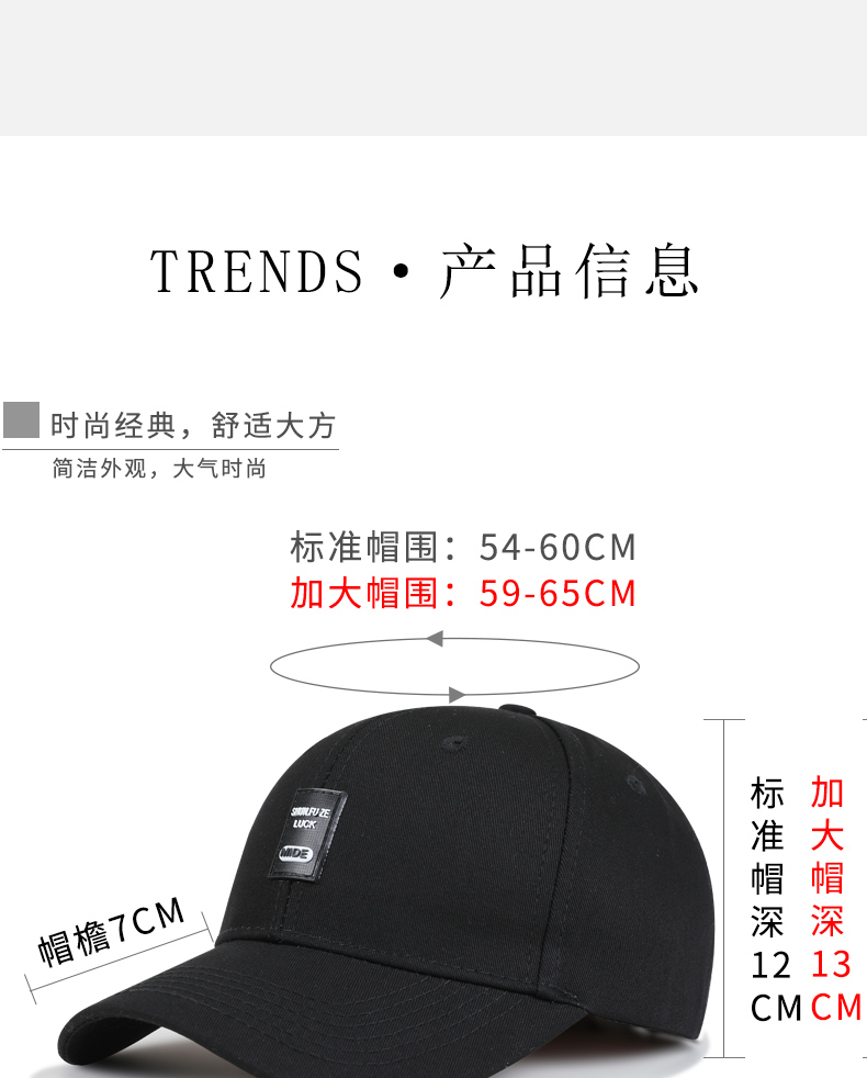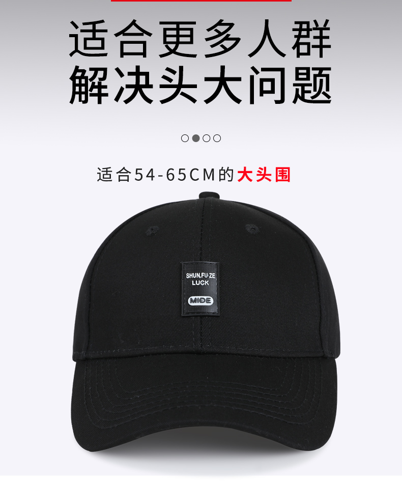 Fangchi hat men's big face baseball cap big head circumference deepened Korean style trendy peaked cap large cotton plus size hat hiking hat BQM-04 black extra size (59-65cm)