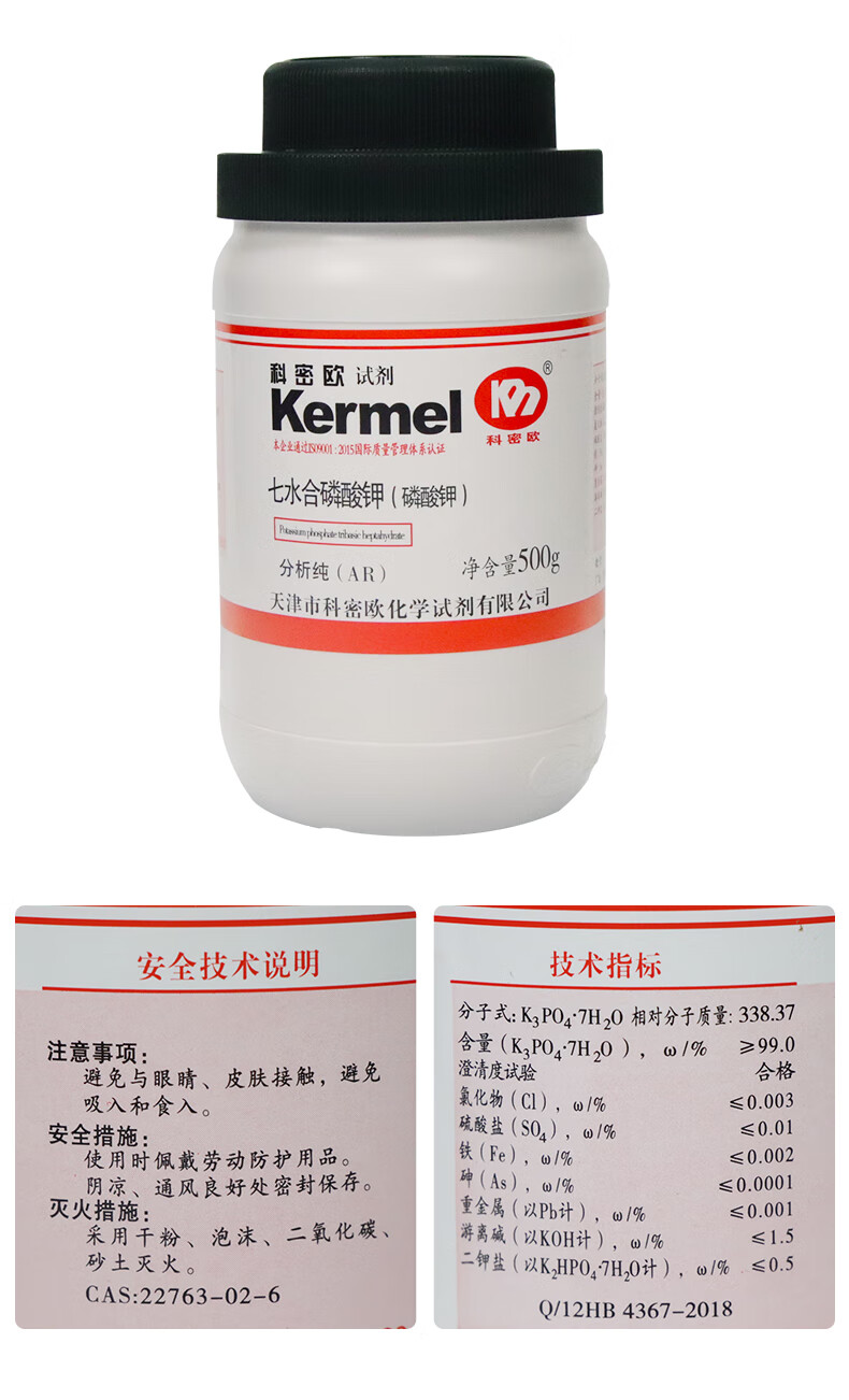 Tianjin Potassium Phosphate Tripotassium Phosphate Heptahydrate AR Analytical Pure 500g 500g