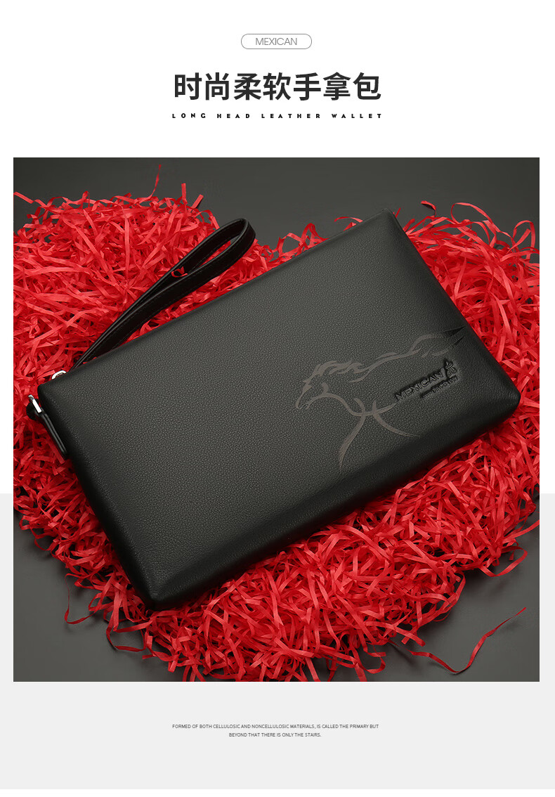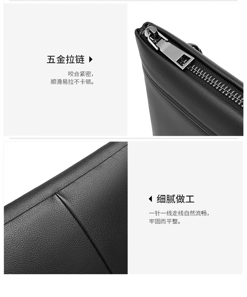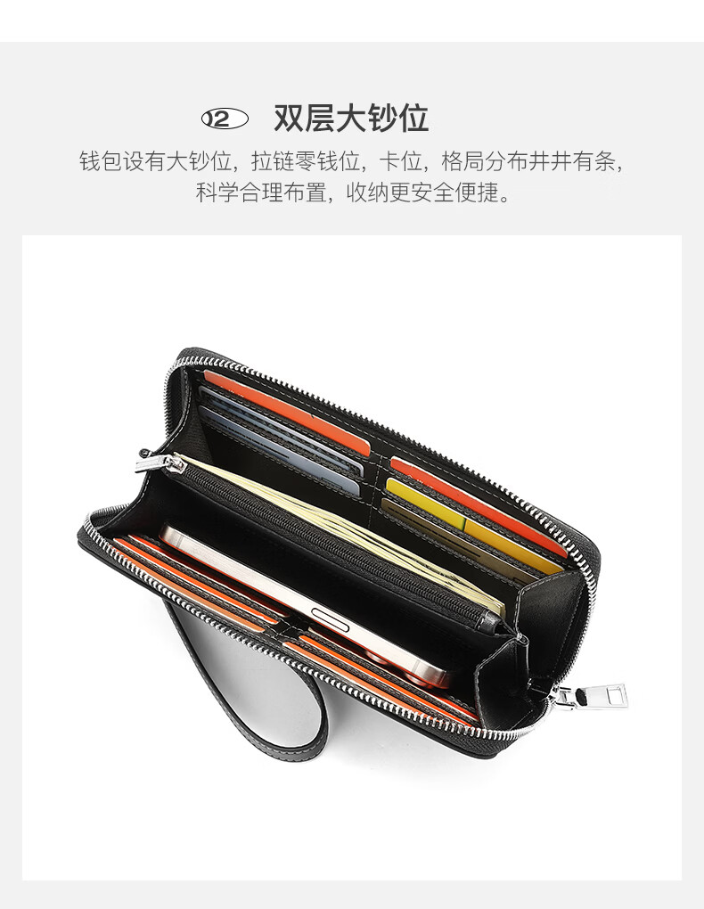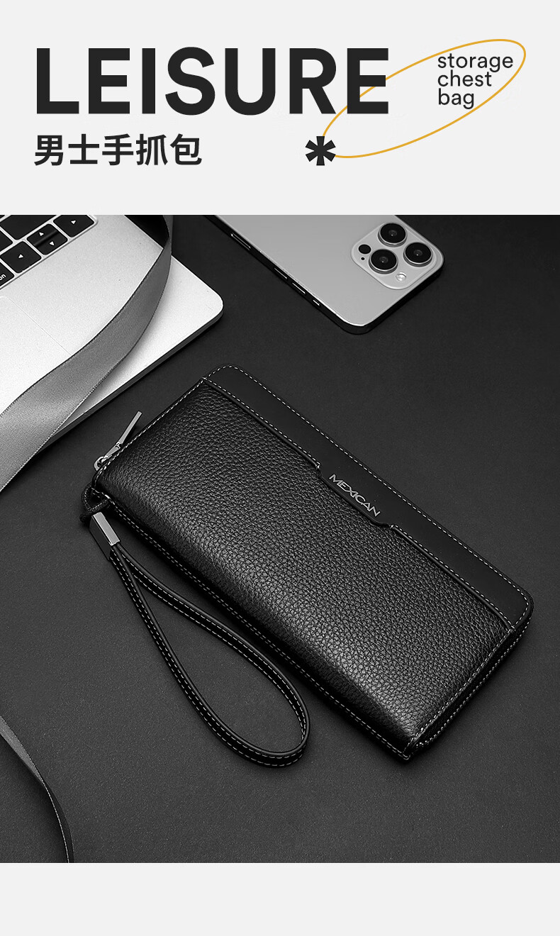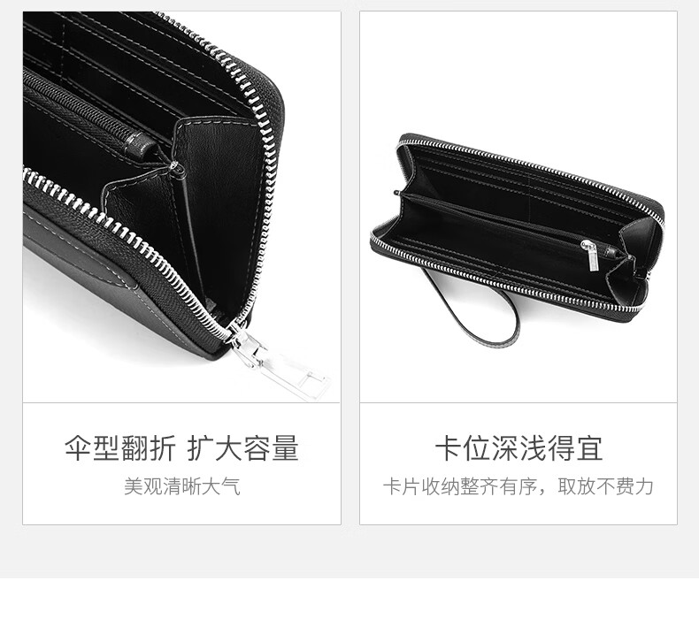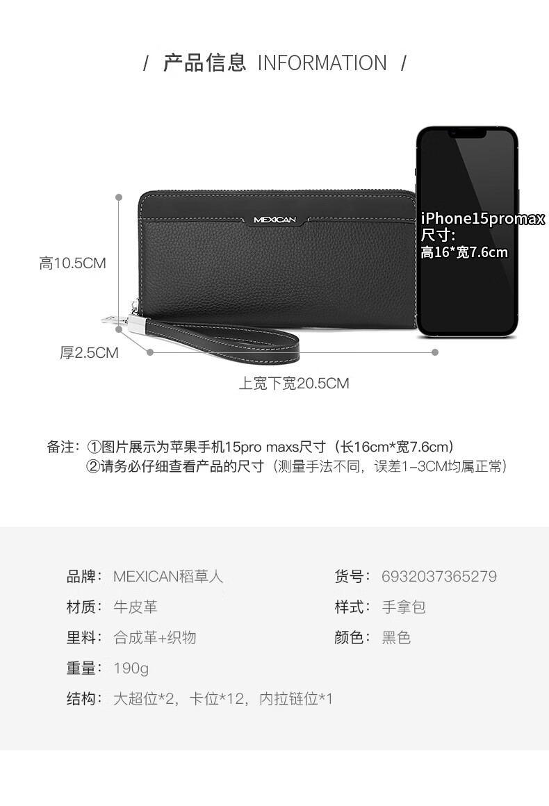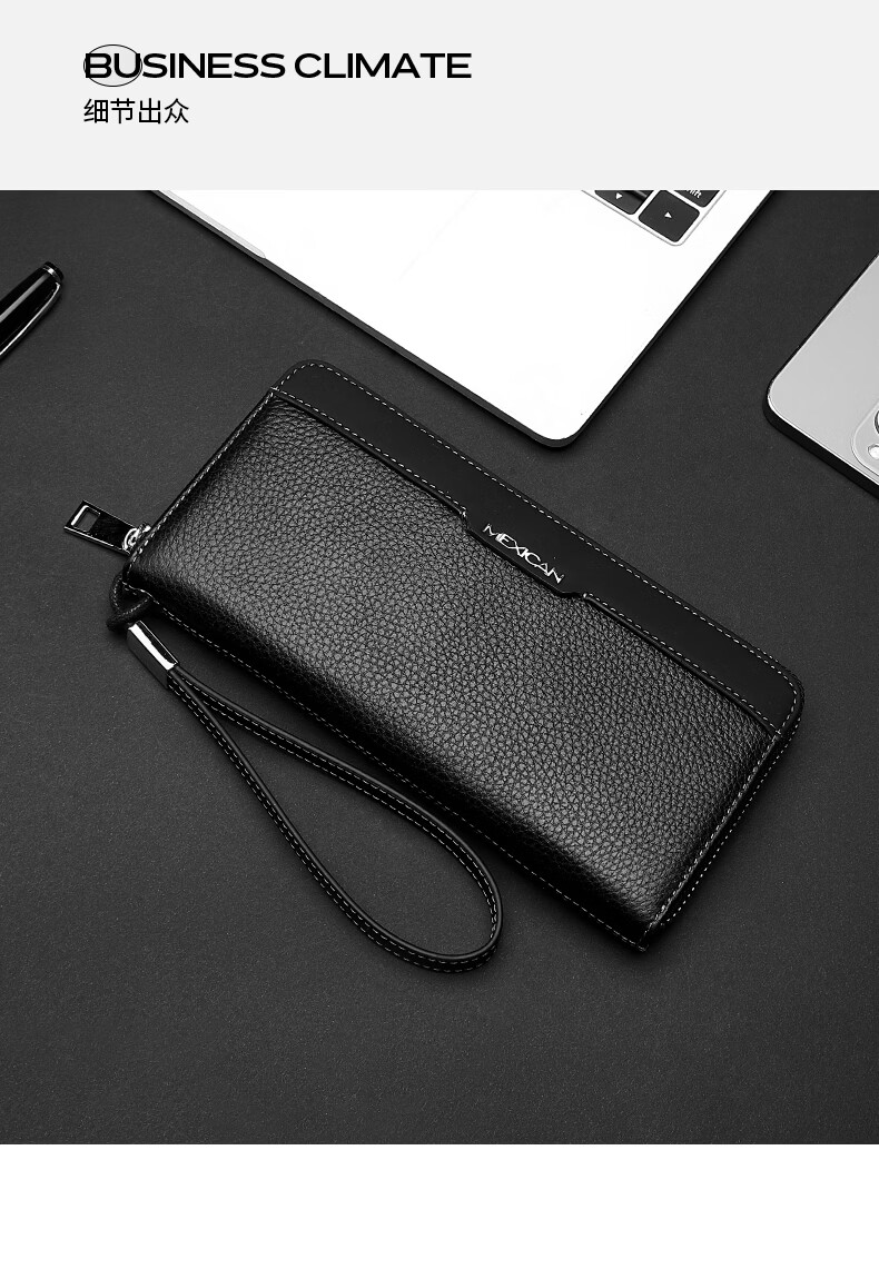 Scarecrow Men's Handbag Long Genuine Leather Business Clutch First-Layer Cowhide Wallet Practical Father's Day Gift for Dad Black Business Main Style