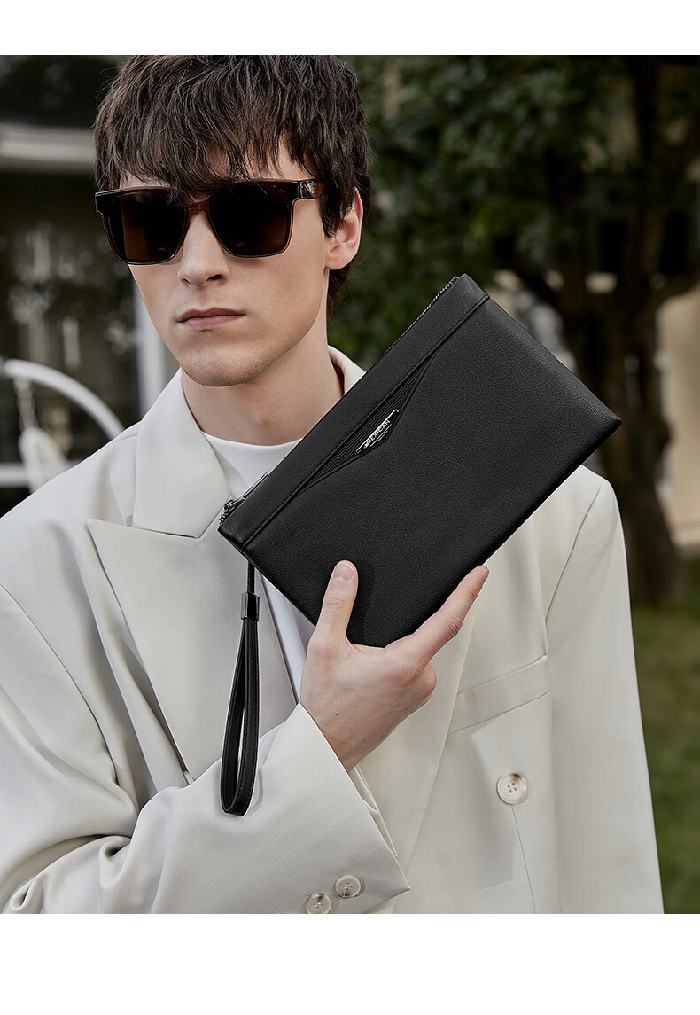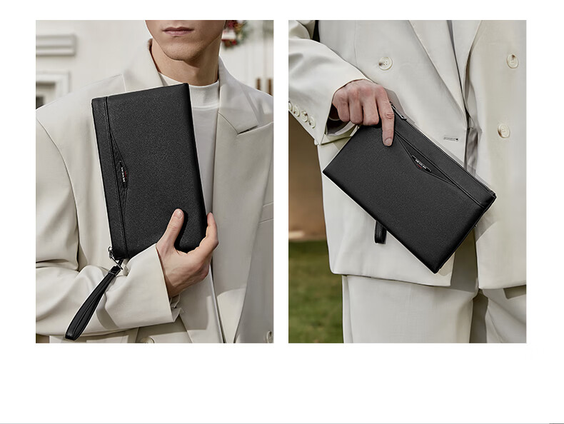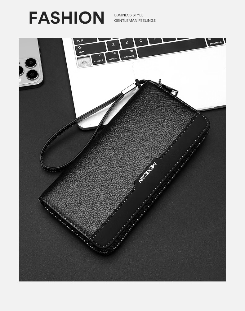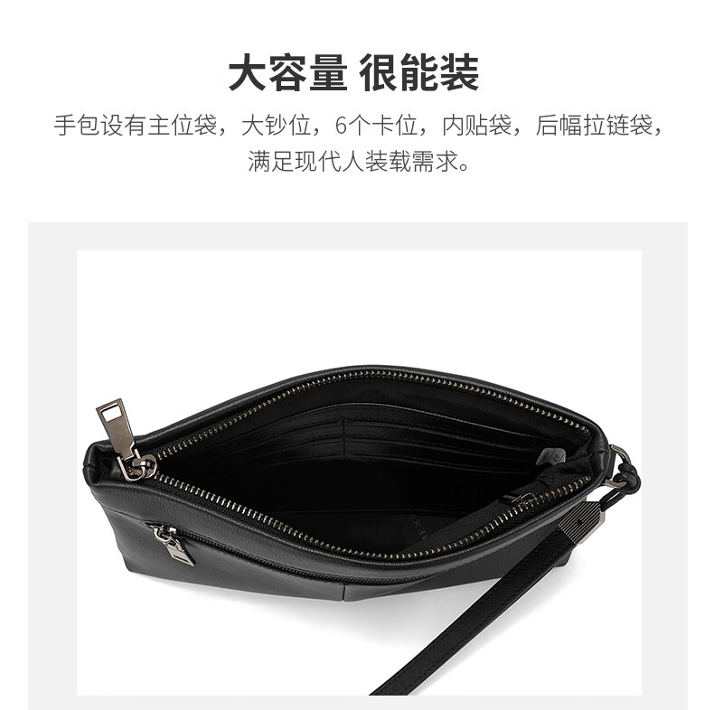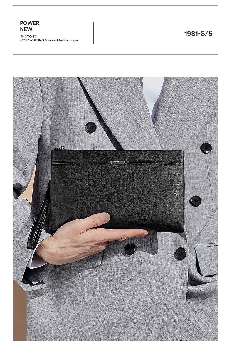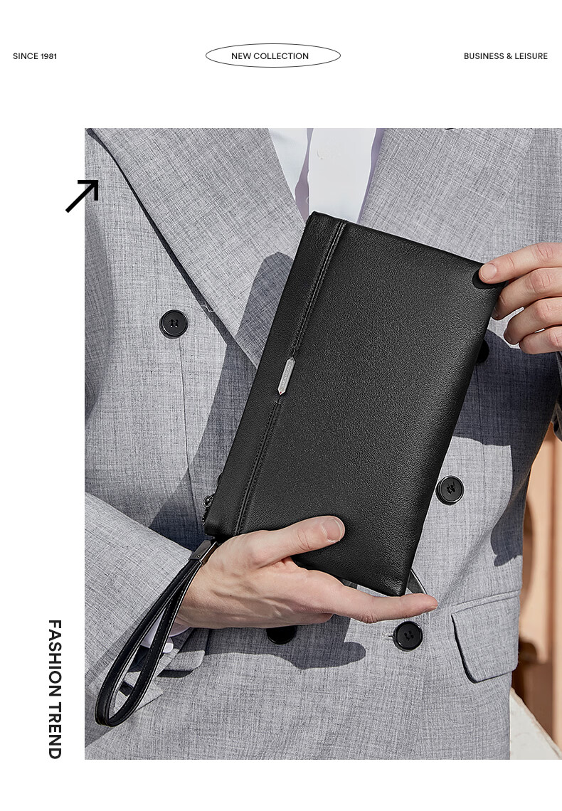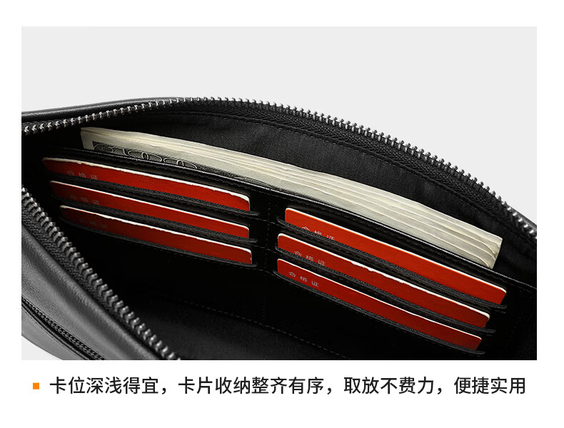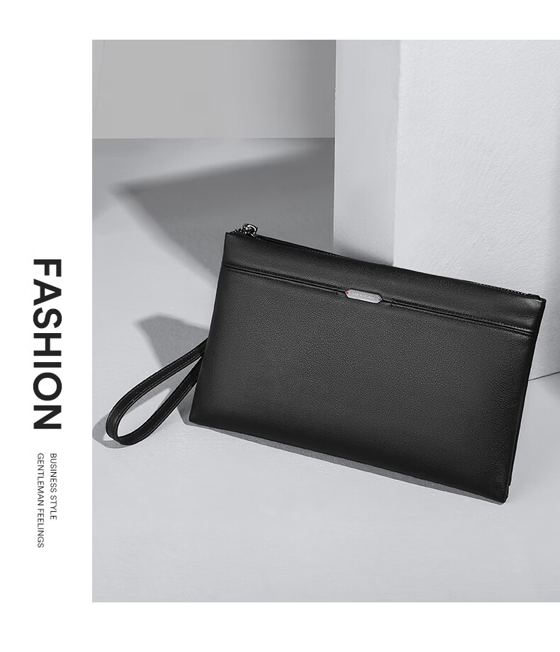Scarecrow Men's Handbag Long Genuine Leather Business Clutch First-Layer Cowhide Wallet Practical Father's Day Gift for Dad Black Business Main Style