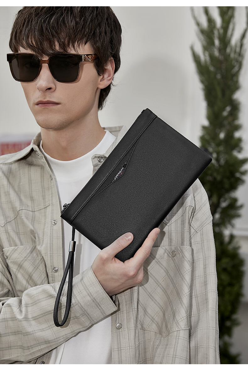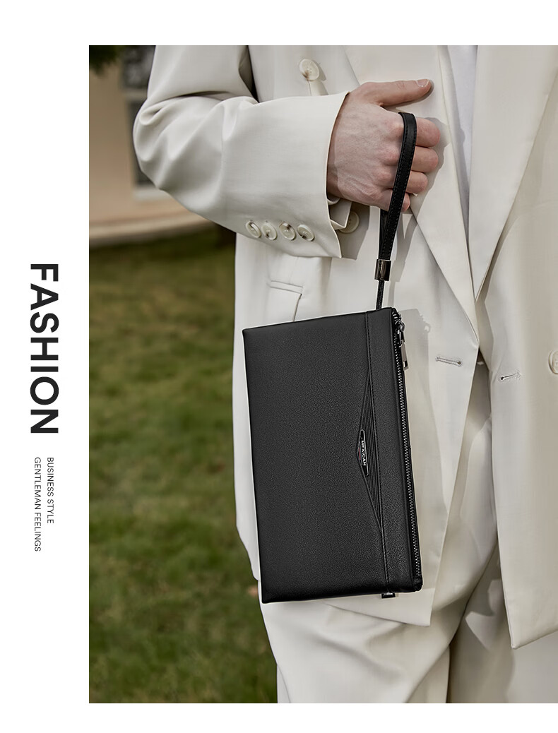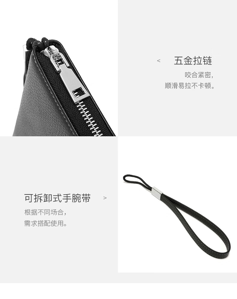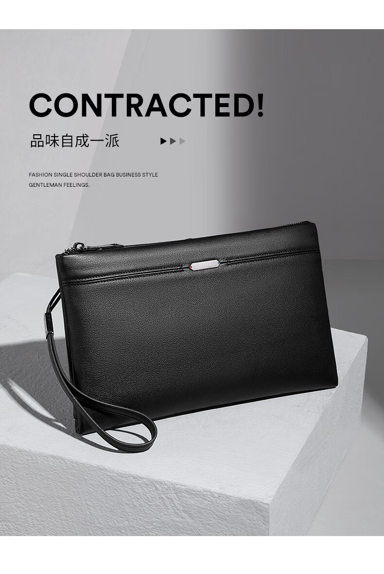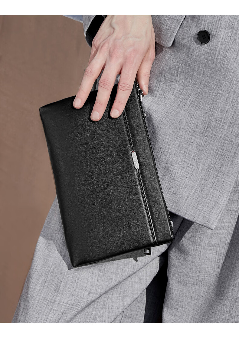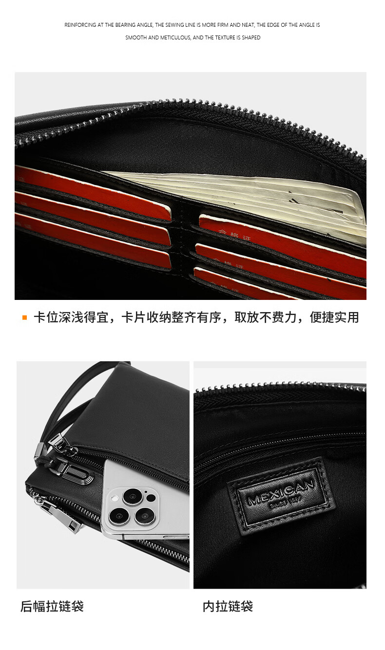 Scarecrow Men's Handbag Long Genuine Leather Business Clutch First-Layer Cowhide Wallet Practical Father's Day Gift for Dad Black Business Main Style