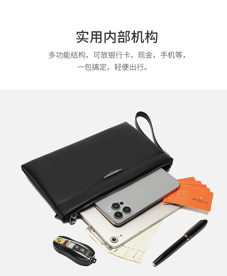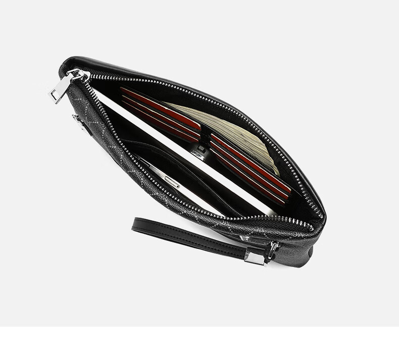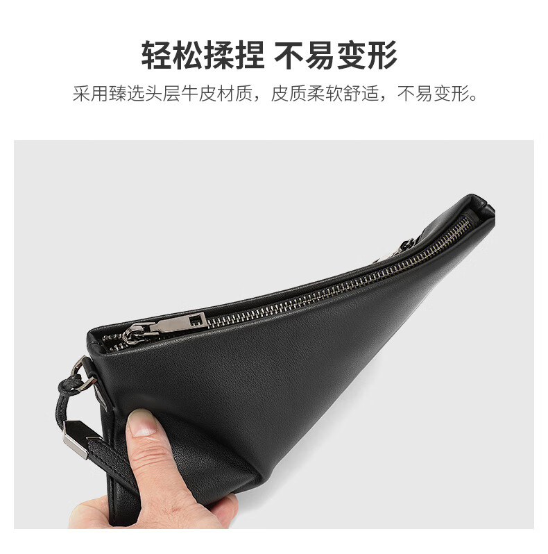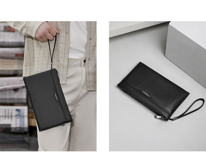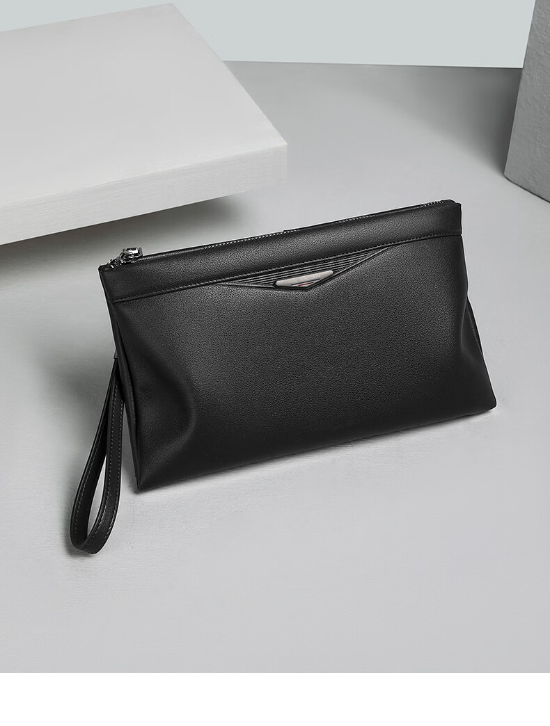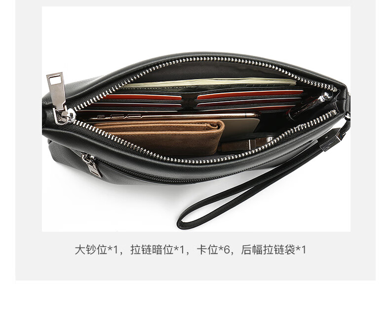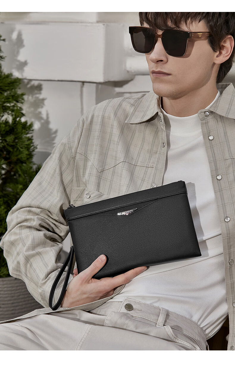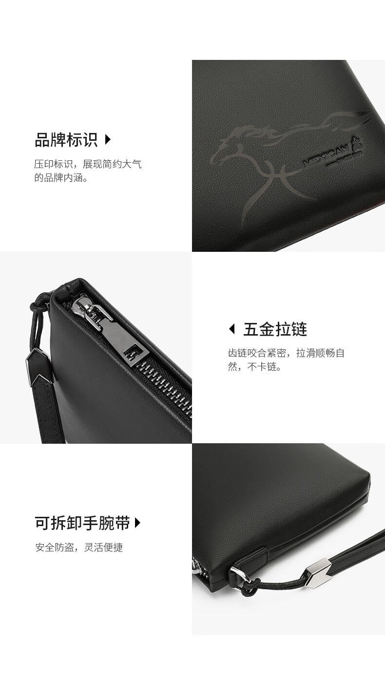 Scarecrow Men's Handbag Long Genuine Leather Business Clutch First-Layer Cowhide Wallet Practical Father's Day Gift for Dad Black Business Main Style