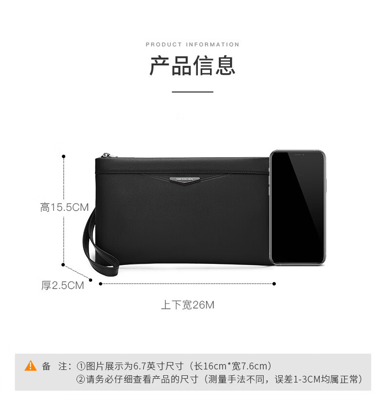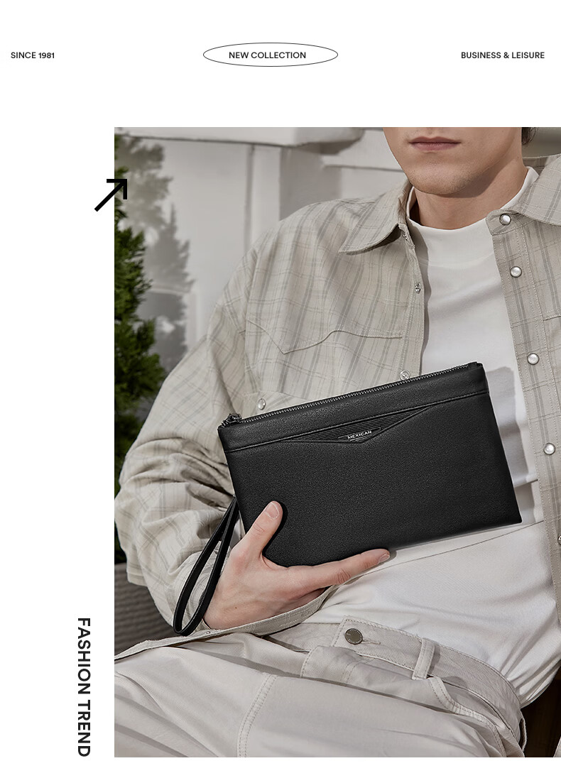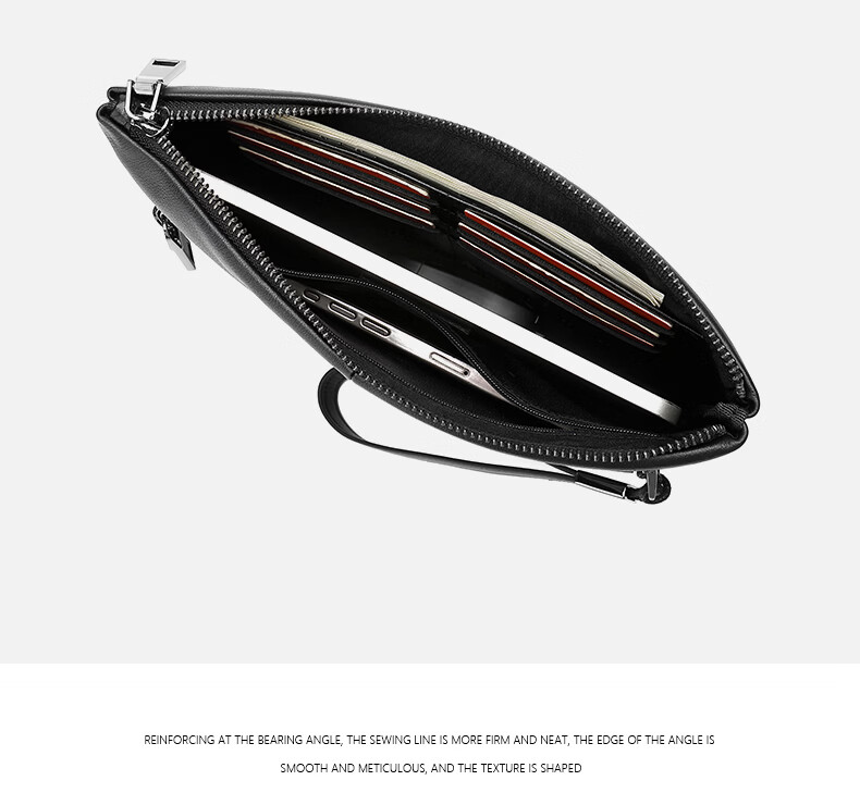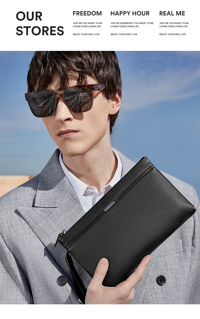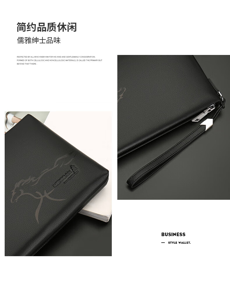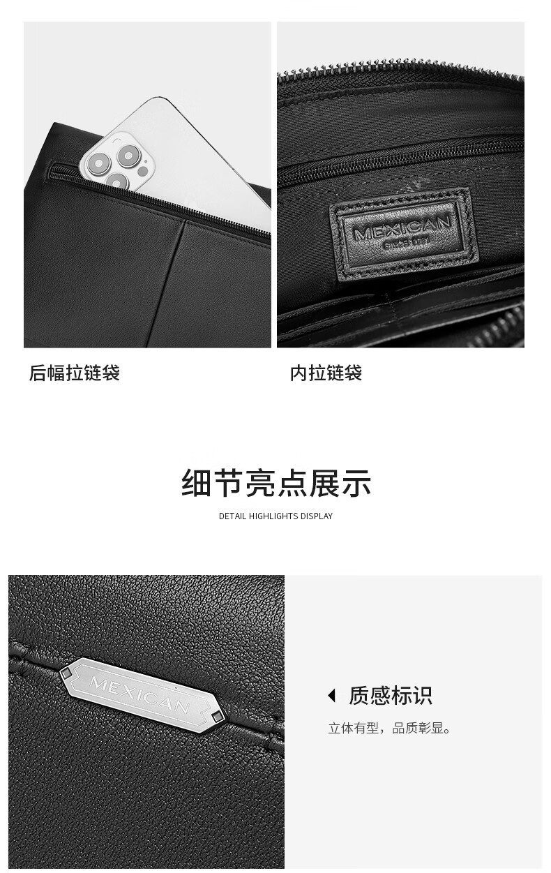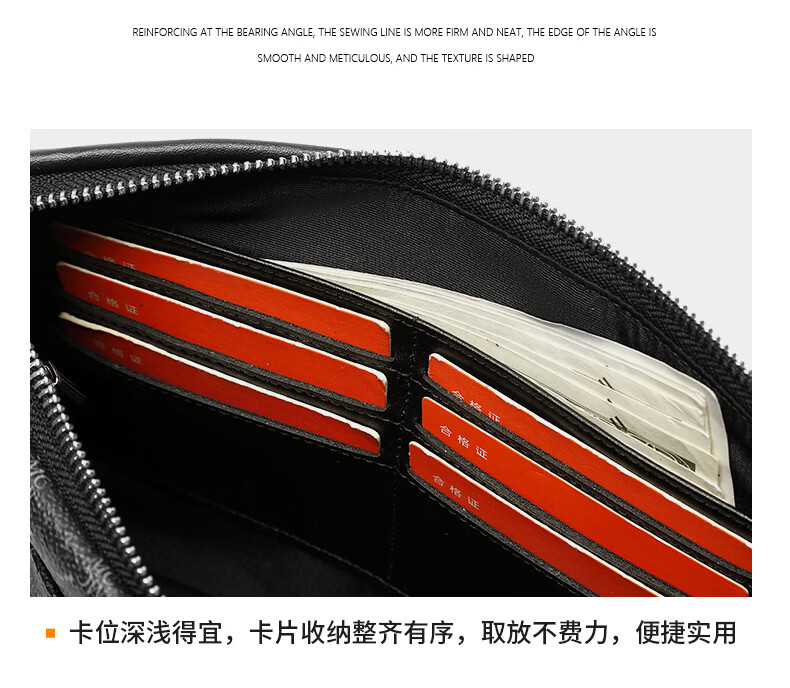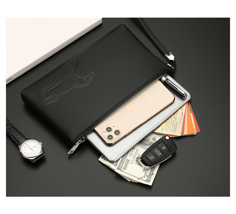 Scarecrow Men's Handbag Long Genuine Leather Business Clutch First-Layer Cowhide Wallet Practical Father's Day Gift for Dad Black Business Main Style