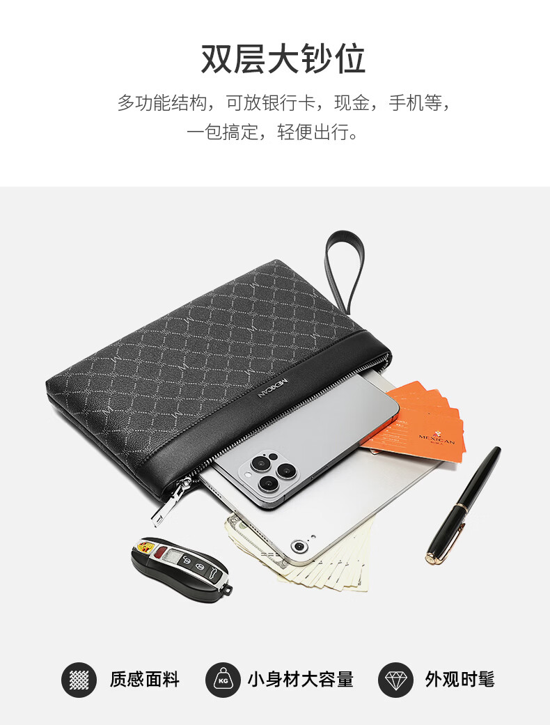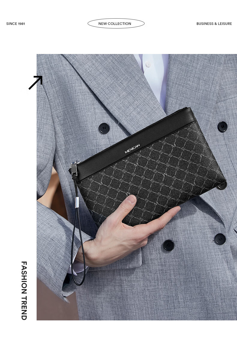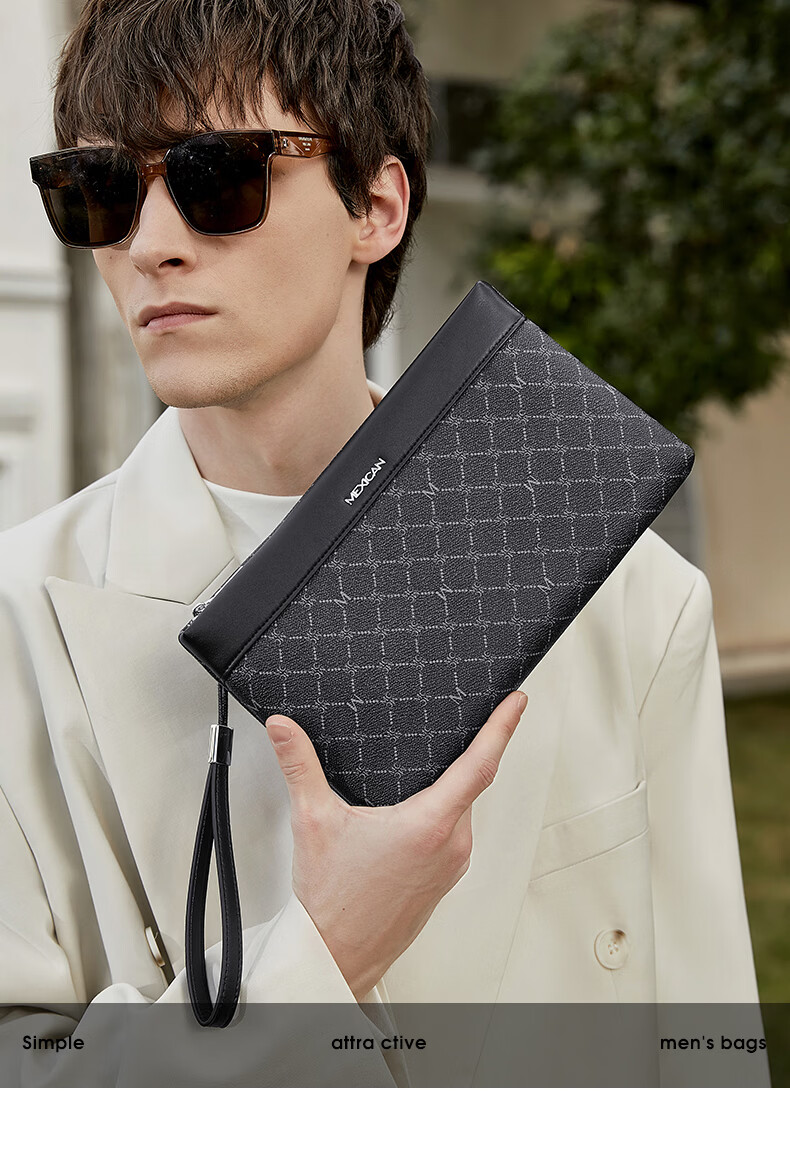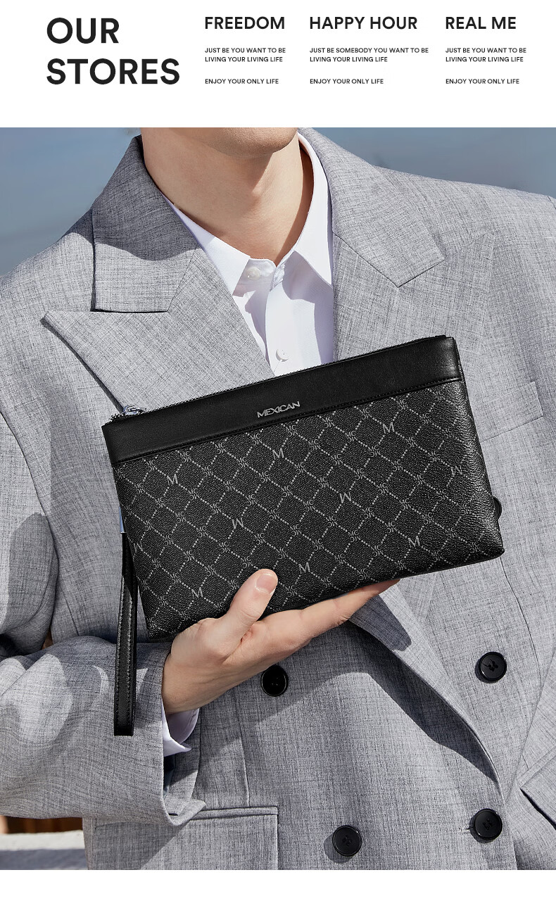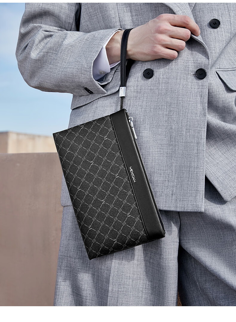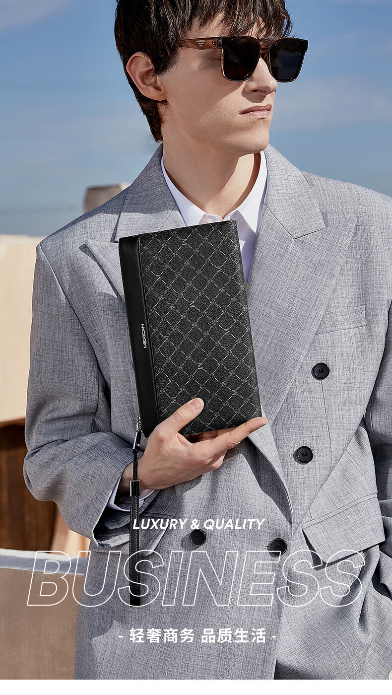 Scarecrow Men's Handbag Long Genuine Leather Business Clutch First-Layer Cowhide Wallet Practical Father's Day Gift for Dad Black Business Main Style