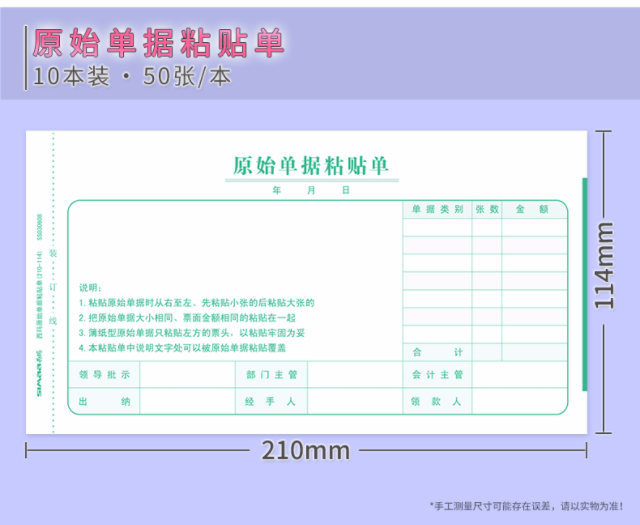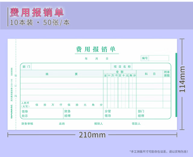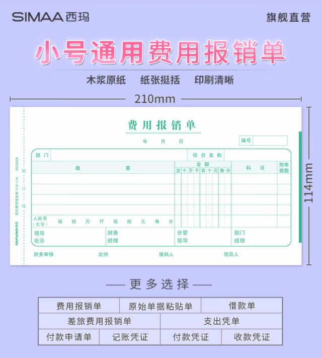 SIMAA general version expense reimbursement form 210*114mm 50 pages/book 10 books/pack Financial documents 12534B