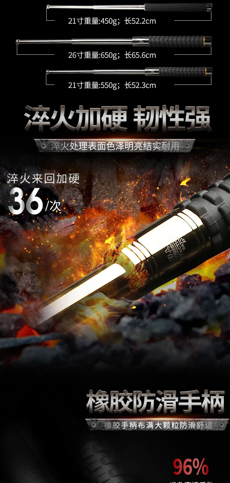 Savage Valley mold steel, solid dog-fighting stick, anti-dog stick, self-defense weapon, legal portable retractable stick, security, Hummer reinforced 26-inch black, extends 65CM, can break bricks