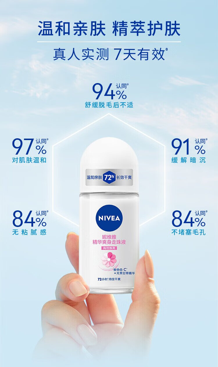 NIVEA Sun Yingsha's same style Antiperspirant Antiperspirant Underarm Dry Roll-On Essence 50ml
