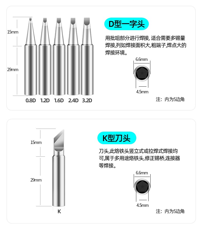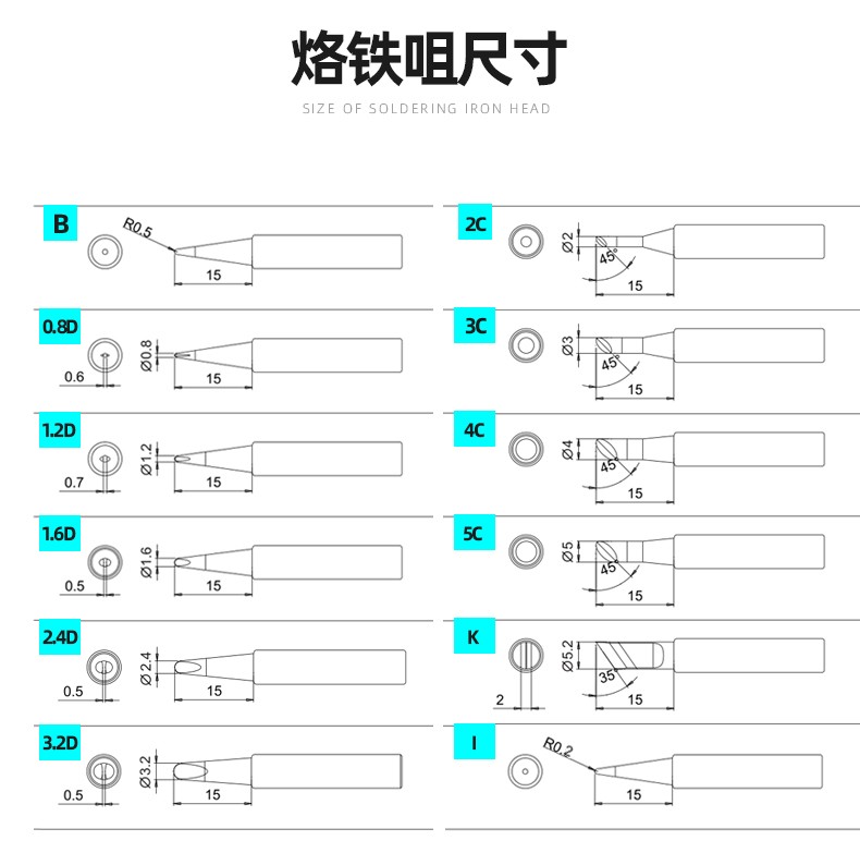 Bakon T600 soldering iron tip anti-oxidation BK881 BK60/90 BK863 electric soldering iron tip sharp tip flat tip welding tip T600-K large tip
