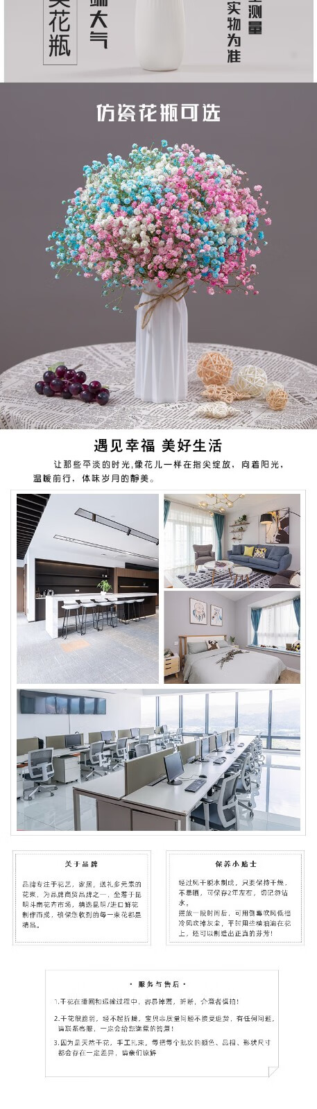 AIMAN flowers, real flowers, dried flowers, natural baby's breath bouquet, home living room store, holiday decorations, gifts, birthdays, purple baby's breath (without vase), dry branches