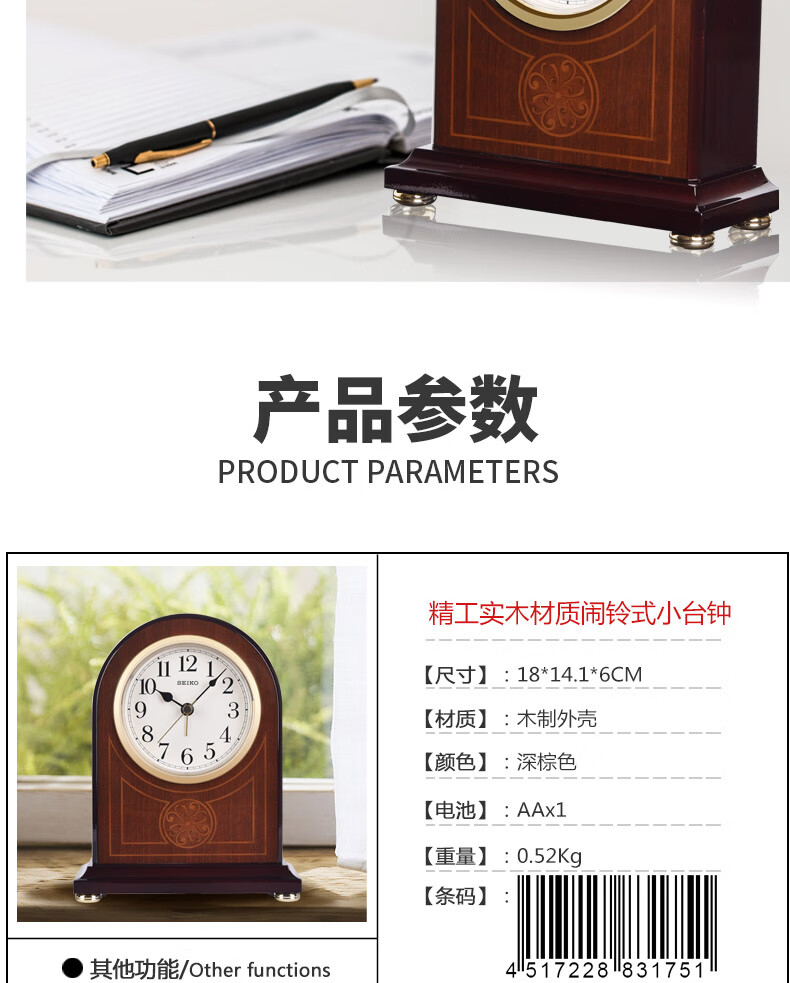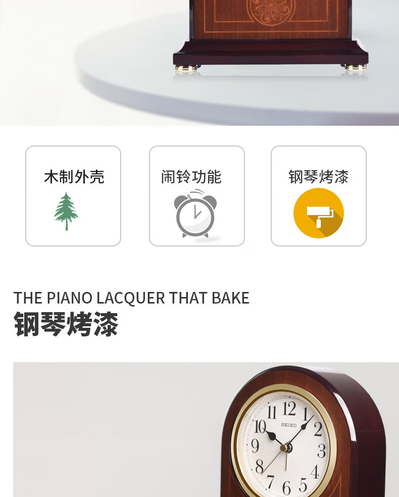 Seiko Japan Seiko Clock New Piano Paint Alarm Function Solid Wood Table Clock Simple Compact Desk Clock