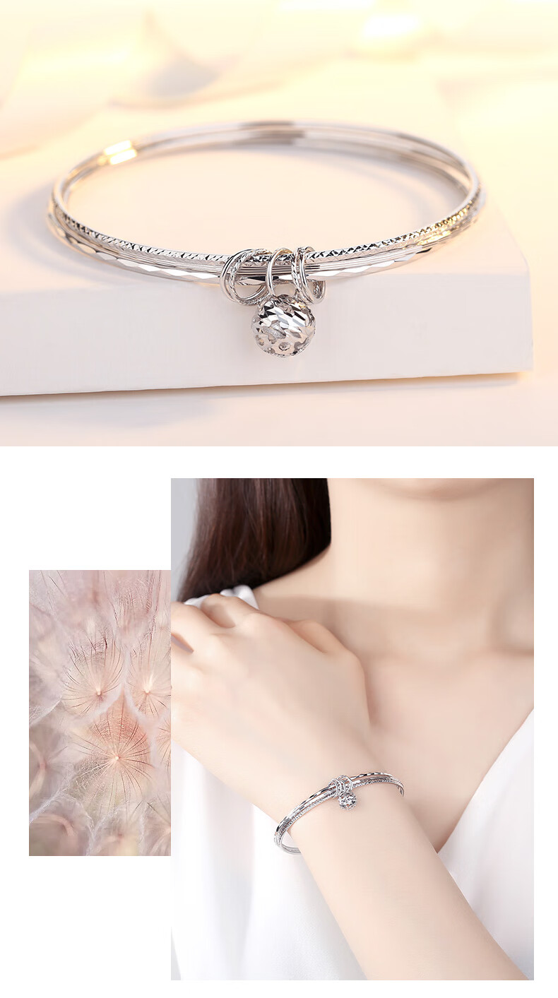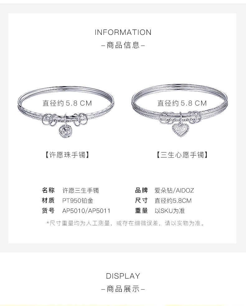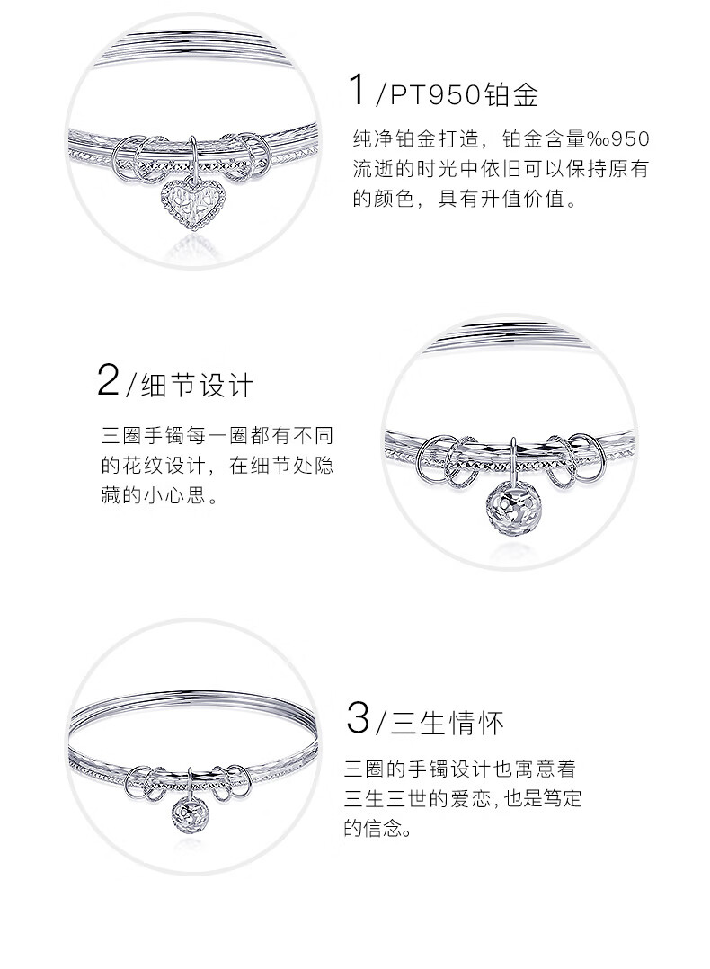 Aido Diamond pt950 platinum bracelet for women, platinum three lives and three generations wishing bead bracelet gift for wife, weight 12.26 grams, inner diameter 52mm