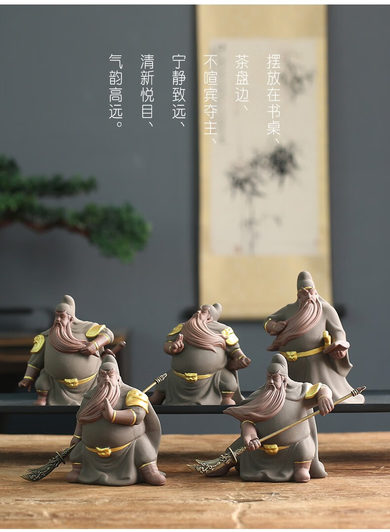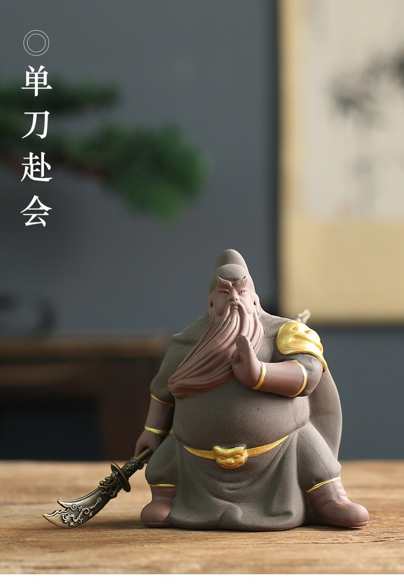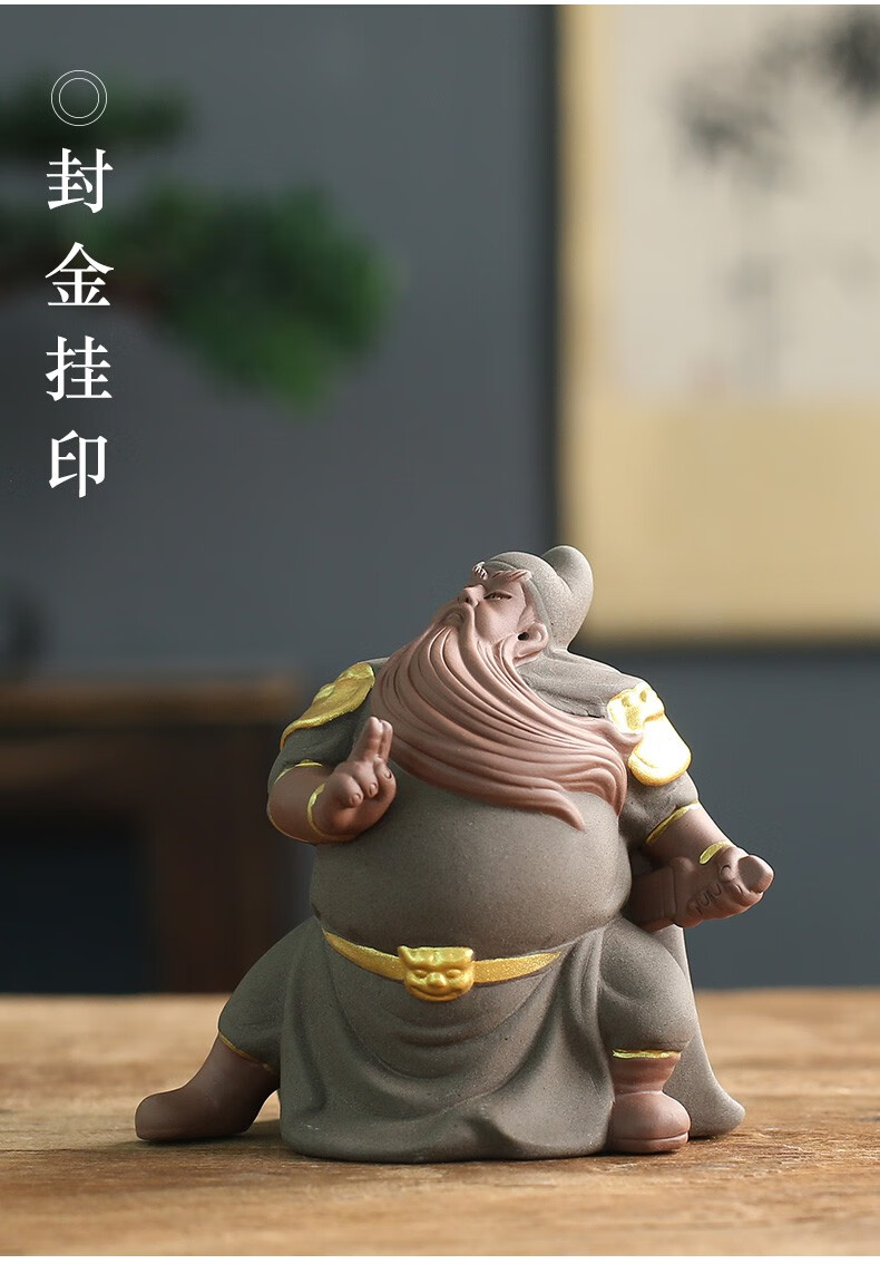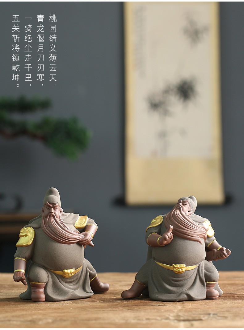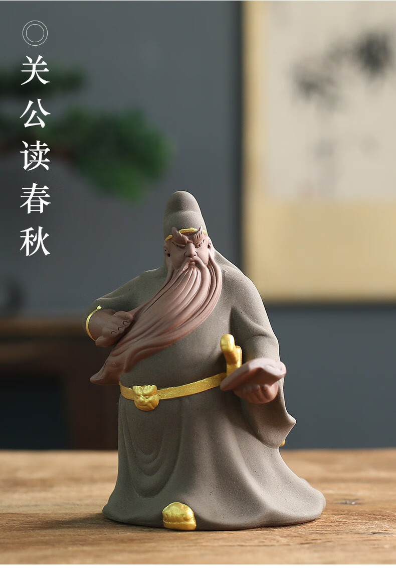 Yuxuan Zisha Tea Pet Ornaments Loyalty Guan Gong Creative Hand Carving Can Grow Tea Play Tea Tray Tea Ceremony Crafts Guan Gong - Reading the Spring and Autumn Period