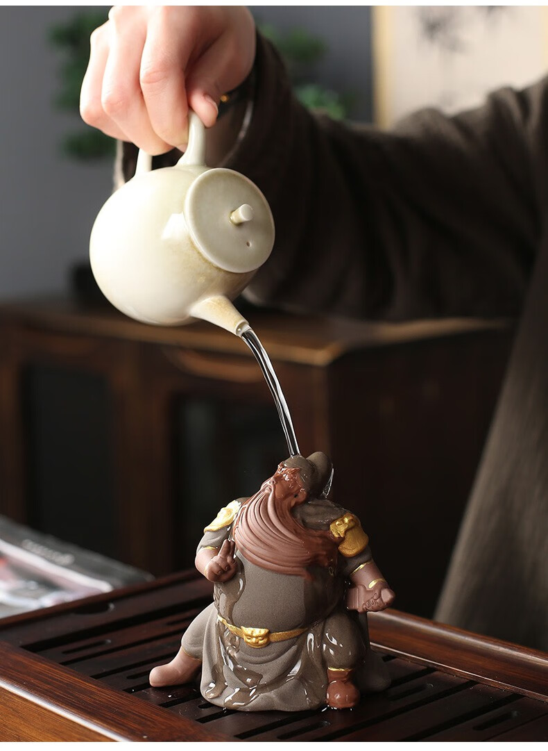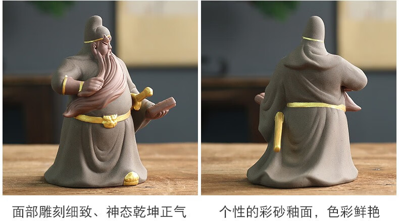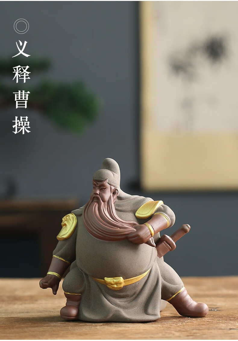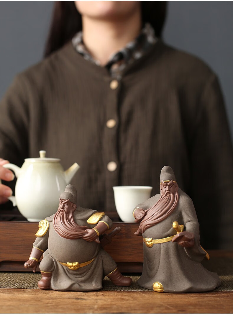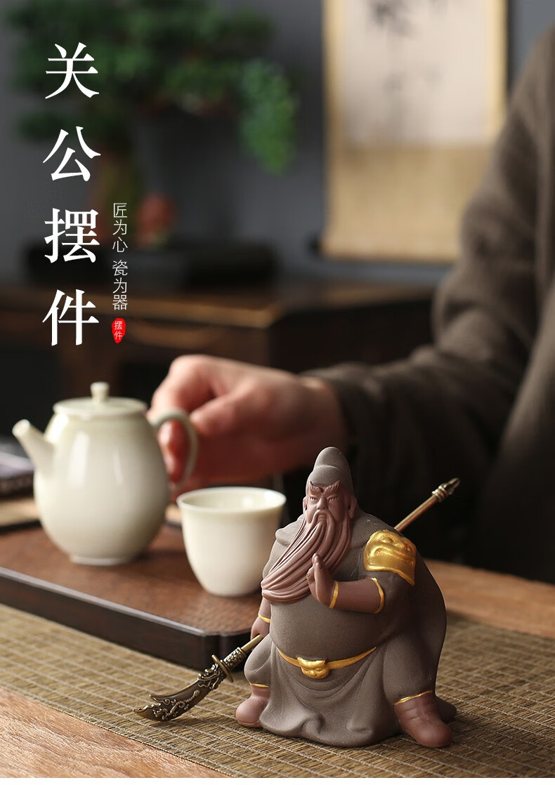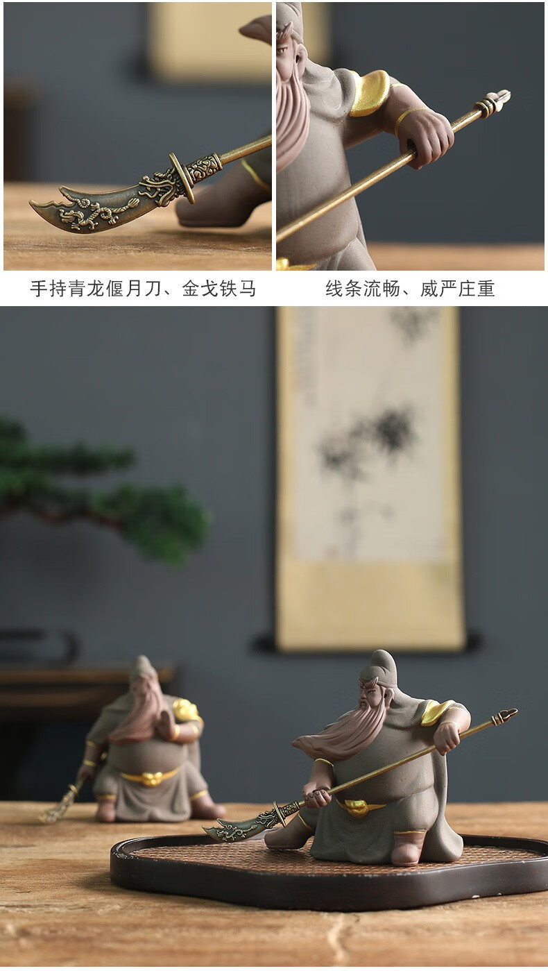 Yuxuan Zisha Tea Pet Ornaments Loyalty Guan Gong Creative Hand Carving Can Grow Tea Play Tea Tray Tea Ceremony Crafts Guan Gong - Reading the Spring and Autumn Period