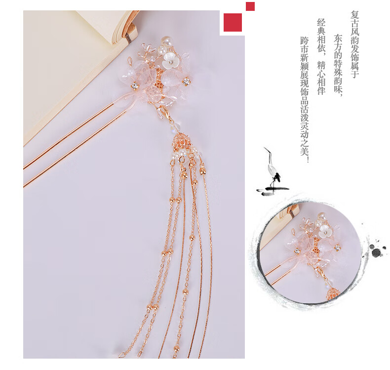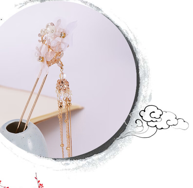 Wanbaozi Hanfu Hair Accessory Dragonfly Hairpin Fairy Air Fring Su Bushaa Beautiful Hairpin Hairpin Ancient Style Headwear Ancient Decoration Accessories Yunmeng Smoke Hairpin Gold Style