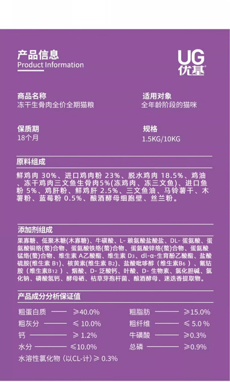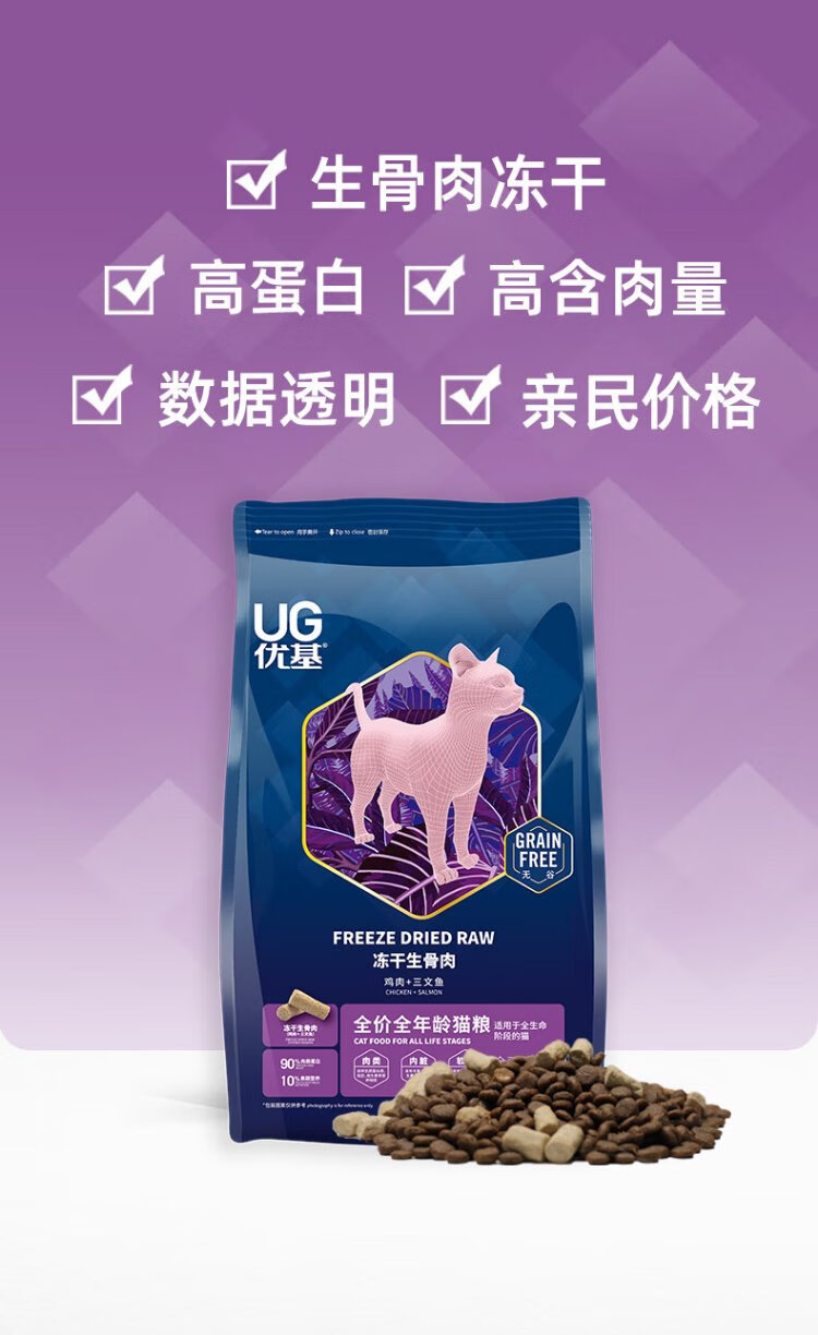 YJ cat food freeze-dried raw bone and meat adult cat and kitten milk cake grain-free full price full-term staple food salmon and chicken double nutrition raw bone and meat freeze-dried cat food 1.5kg