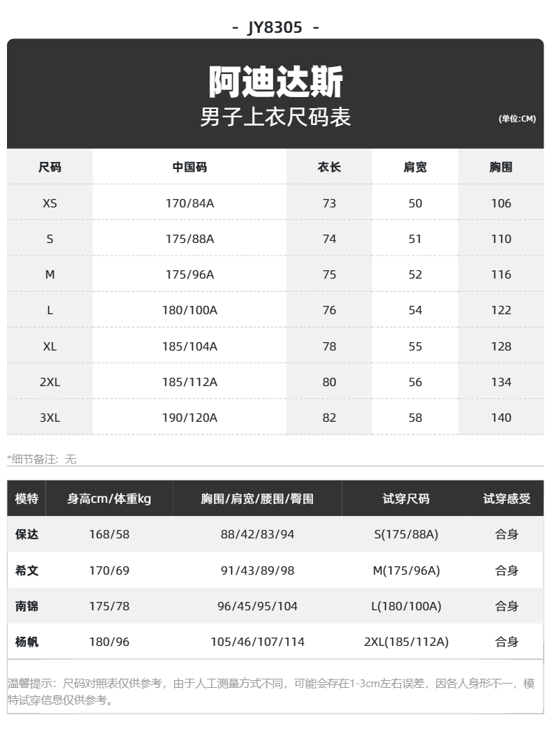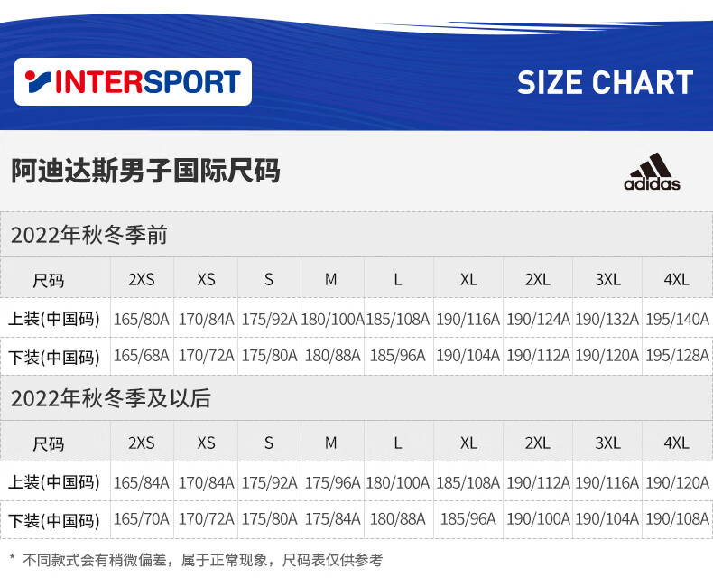 China (cm) 165 / 88-90 170 / 96-98 175 / 108-110 180 / 118-122 185 / 126-130