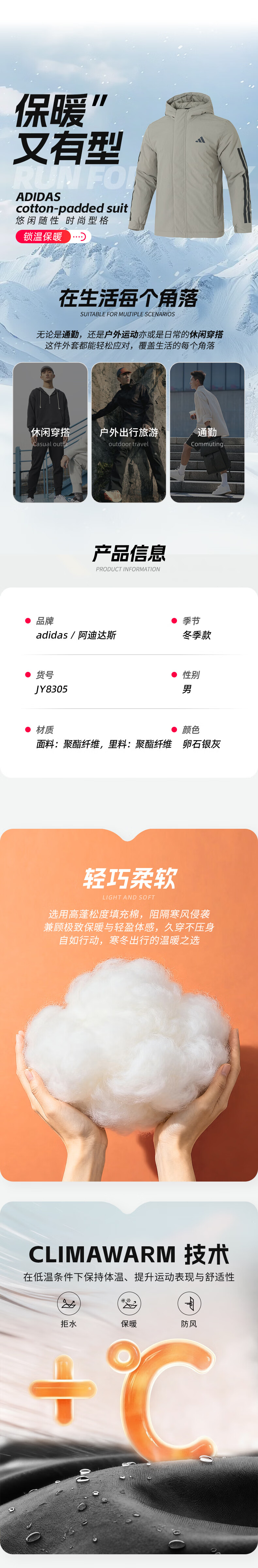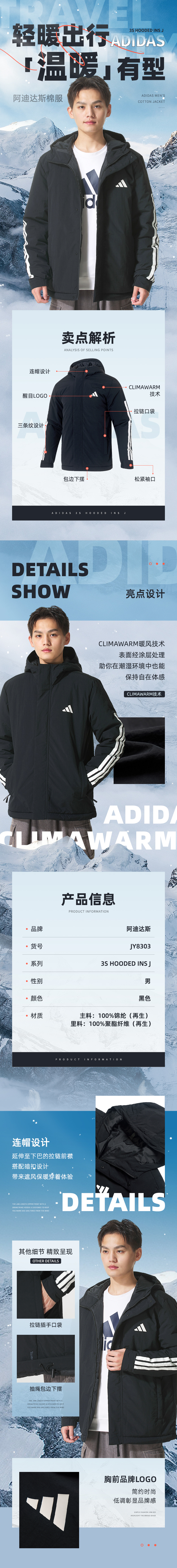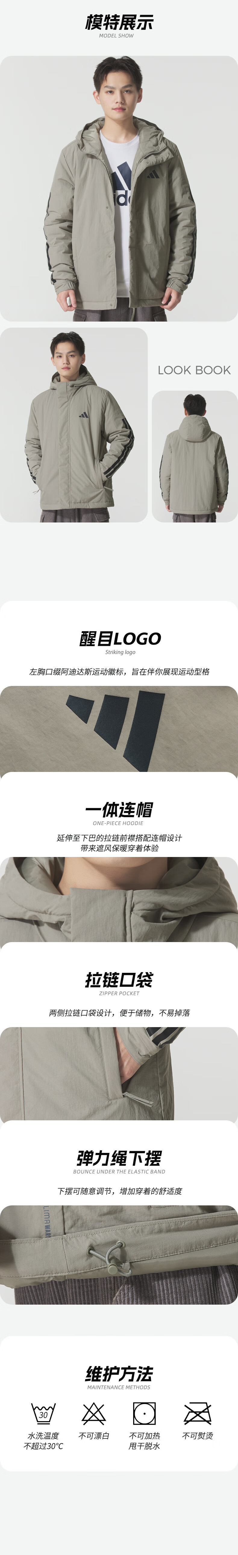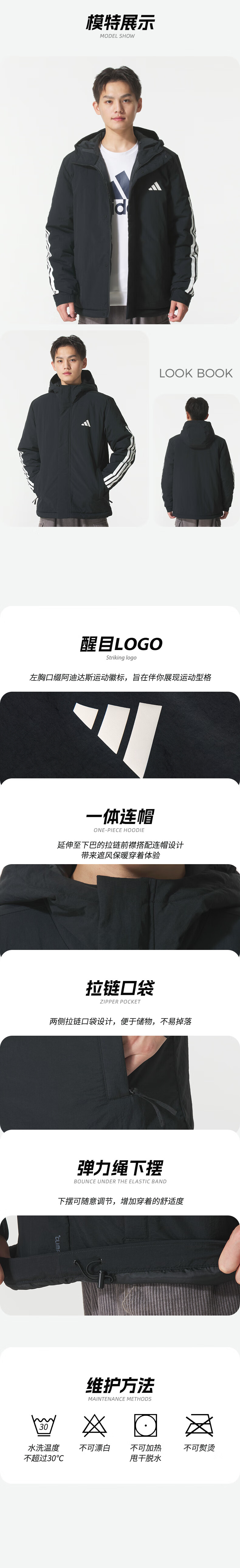 Adidas (adidas) cotton clothing for men 25 winter new sportswear windproof hooded cotton clothing jacket outdoor warm sports cotton clothing black / new large cotton clothing / store manager's main recommendation 3XL recommended weight 200Jin Jin equals 0.5kg -220Jin Jin equals 0.5kg