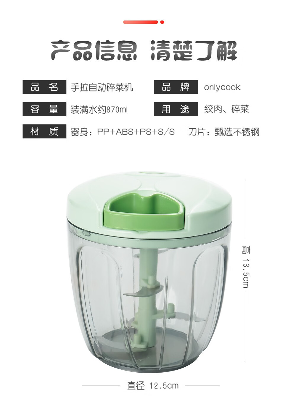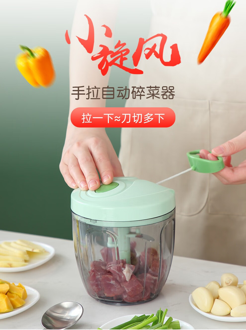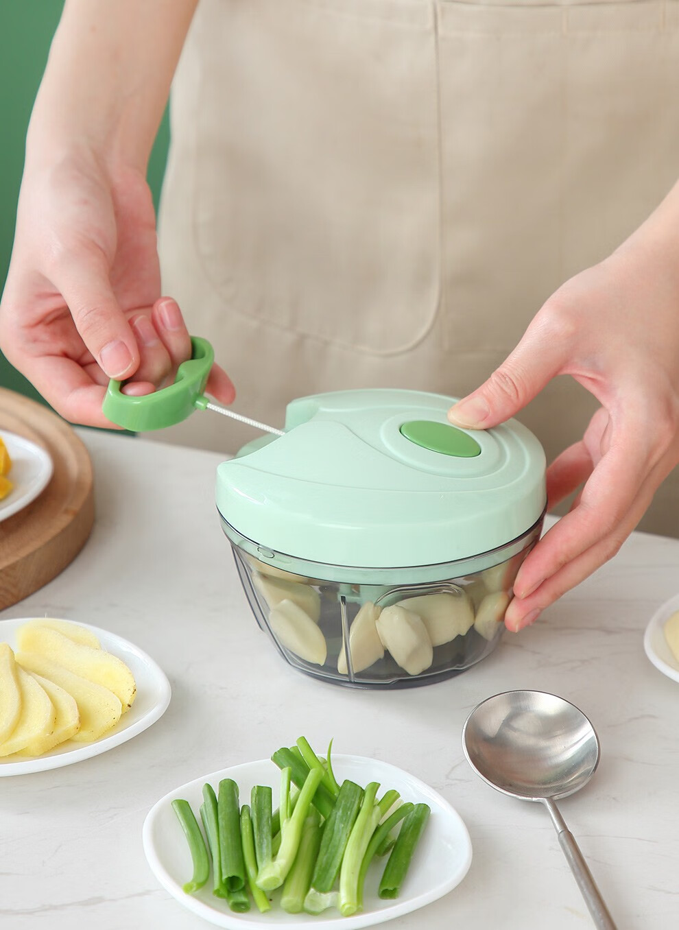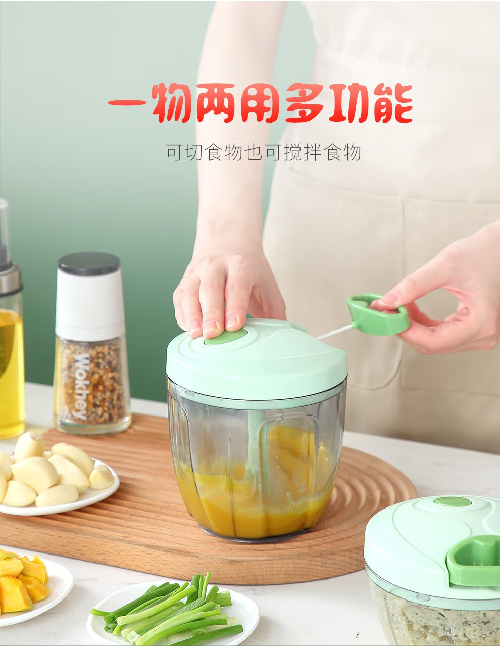 Onlycook garlic pounder household garlic mashed artifact kitchen hand-pulled meat grinder vegetable grinder cooking garlic stirrer garlic puller green transparent small size / 1 set